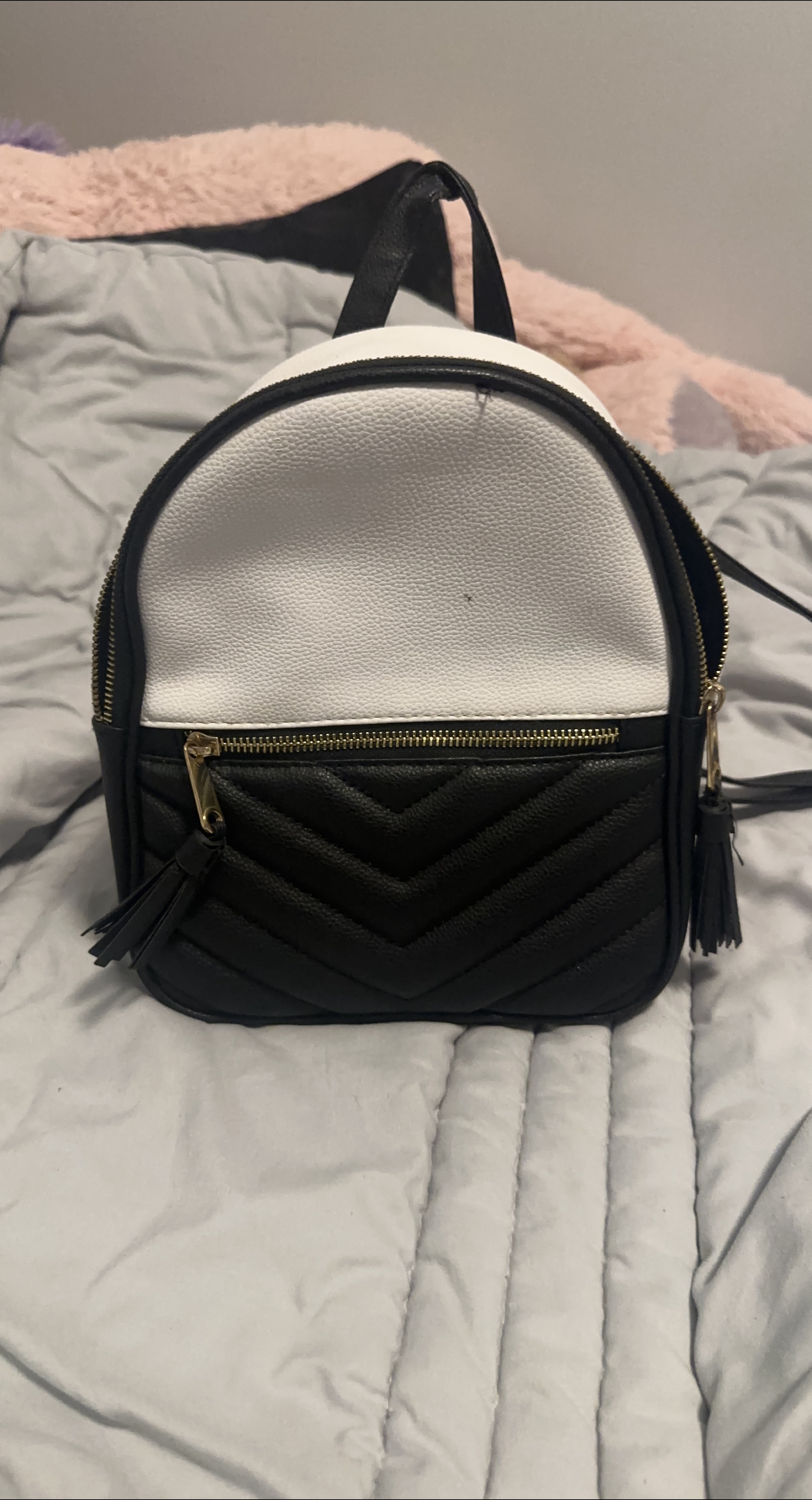 Cute mini backpack in black and white! Perfect for carrying your essentials in style. It's in great condition and ready for a new home