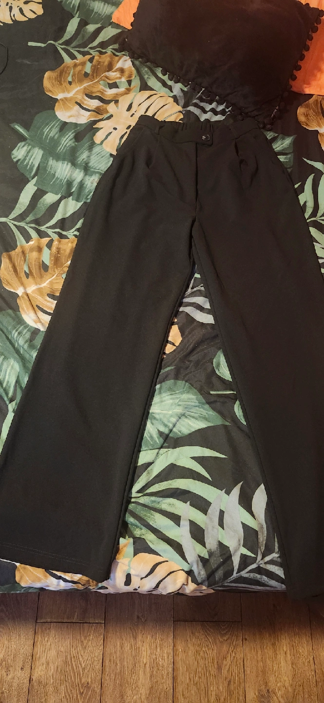 Selling a pair of black, wide-leg dress pants. They're in great condition and ready for a new home! Perfect for work or a night out very comfortable with pockets