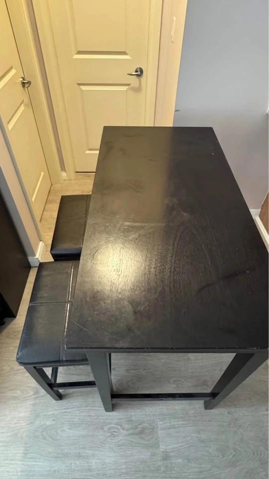 Black wooden table with 2 chairs