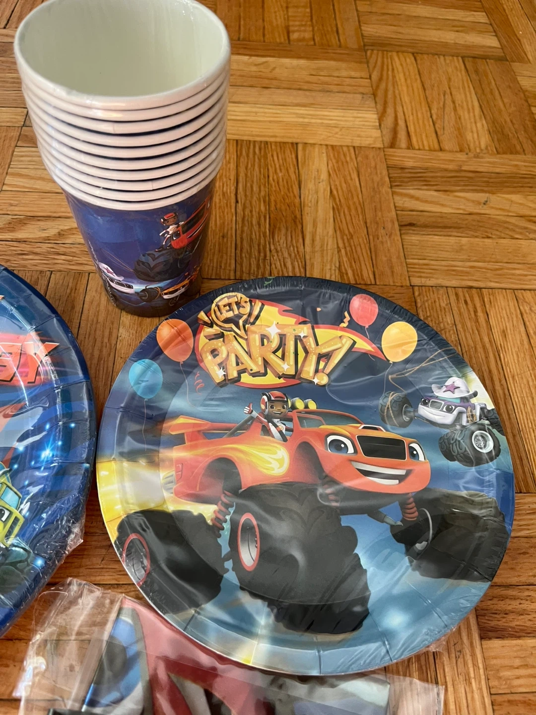 Get ready to rev up your little one's birthday with this Blaze and the Monster Machines party set! Includes plates, cups, napkins, cutlery, and more, all featuring Blaze and his friends. Perfect for a themed birthday bash!