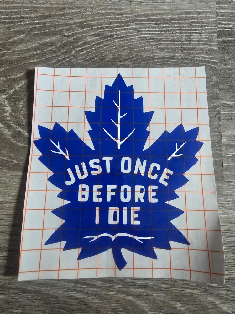 Show allblue, 6 inch wide Toronto Maple Leafs "Just Once Before I Die" decal made with high quality permanent vinyl. can be made in a variety of colours, and any size up to 12 inches