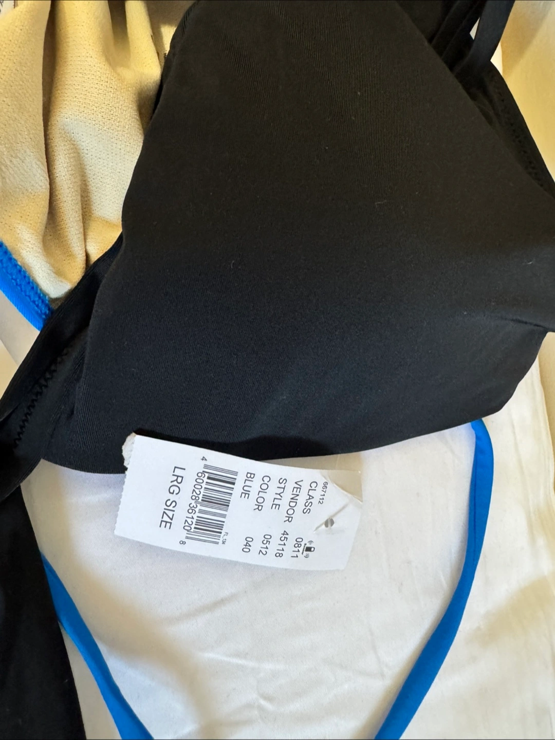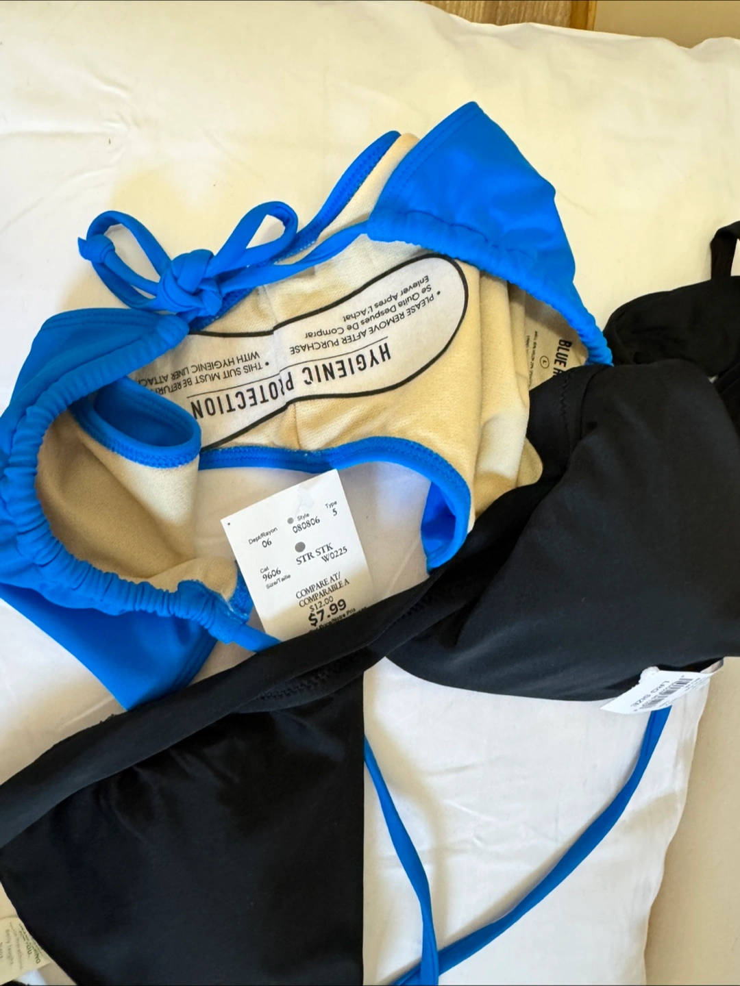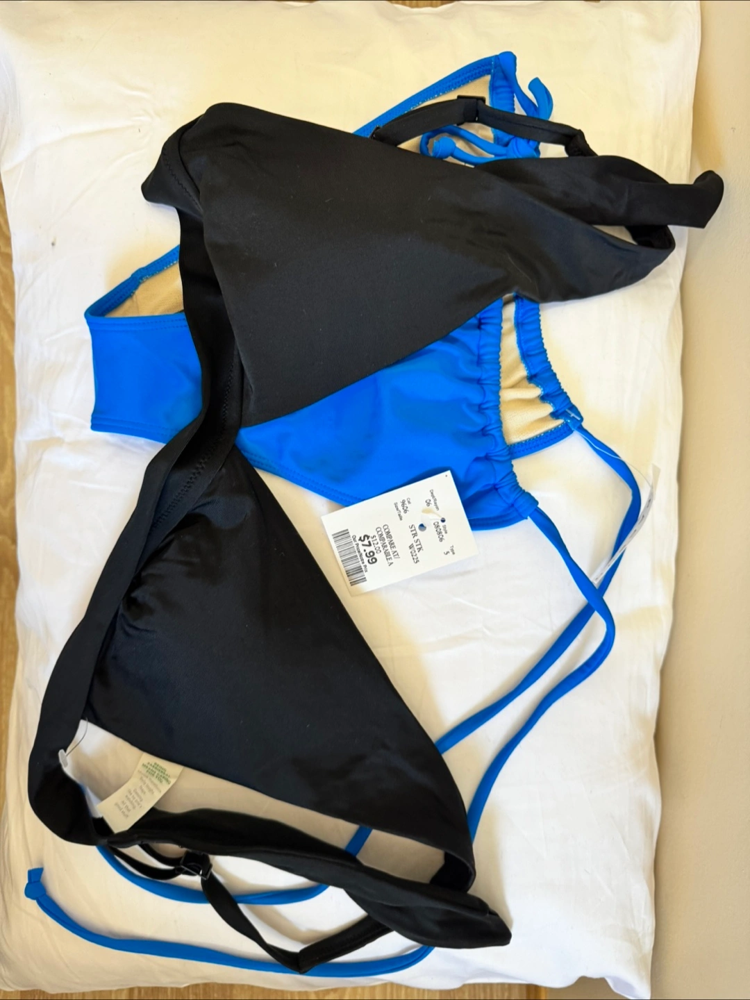 Selling a cute bikini set in blue and black. The size is large. It's in great condition and ready for some fun in the sun