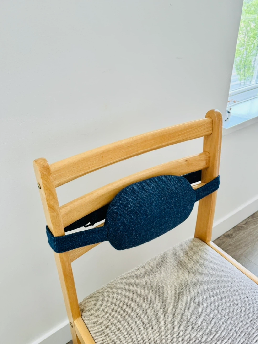 This blue lumbar support pillow is perfect for adding comfort and style to any chair! It's in great condition and ready to provide some extra back support. Great for working from home or just relaxing