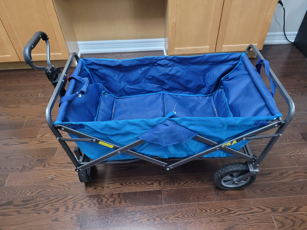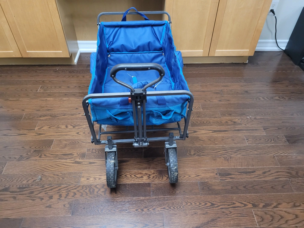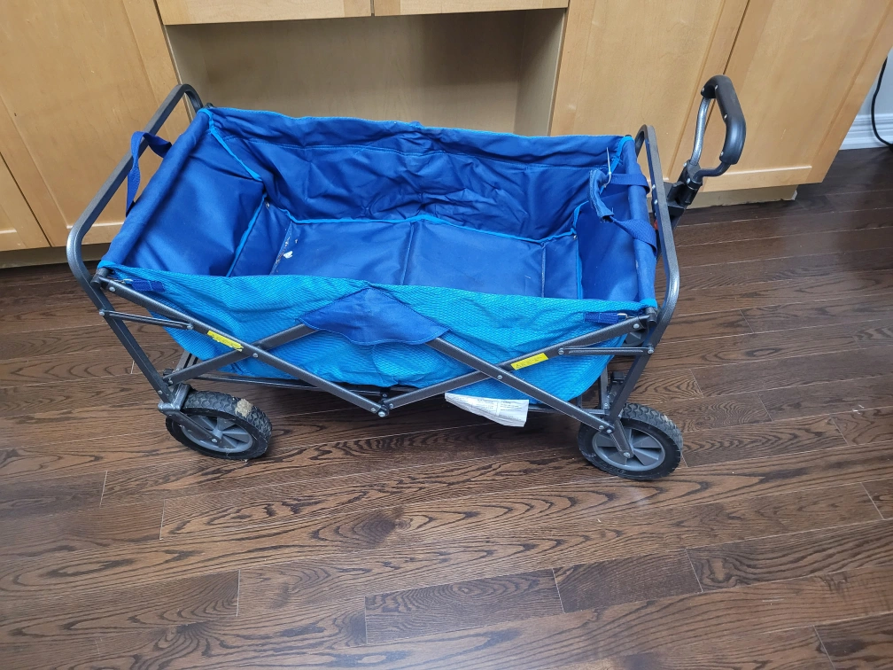 Selling a blue folding wagon, perfect for hauling groceries, camping gear, or anything else you need to move around! It's in great shape and ready for a new home
