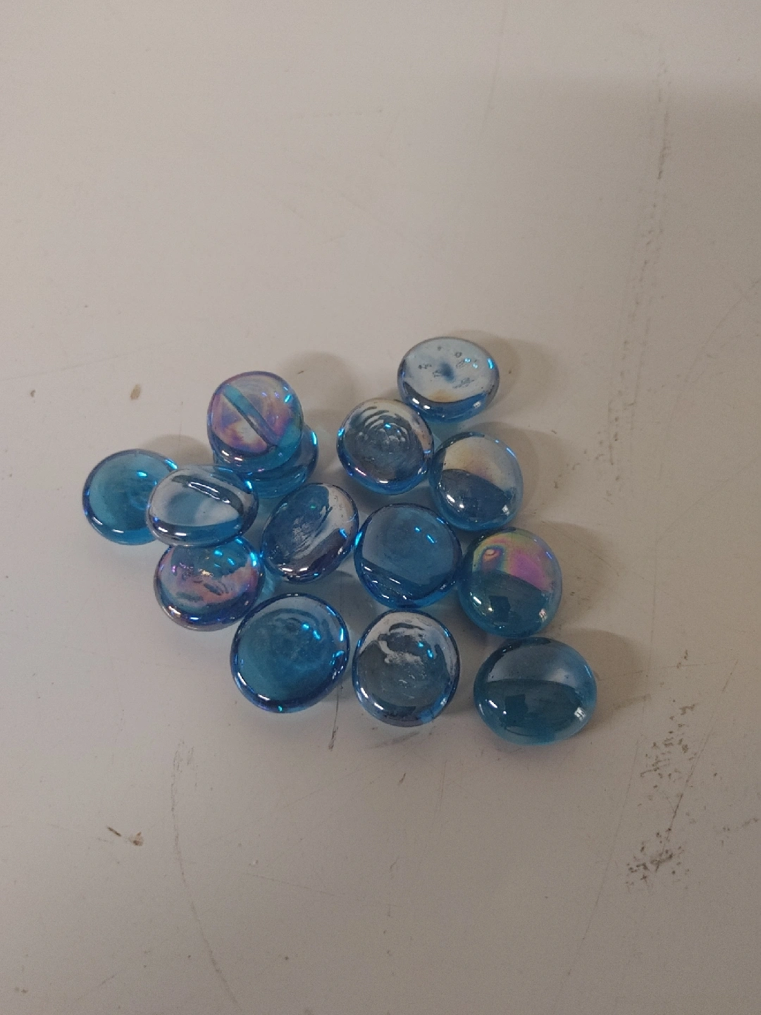 A collection of blue glass gems, perfect for decorative purposes or craft projects! They have a lovely translucent quality that catches the light beautifully