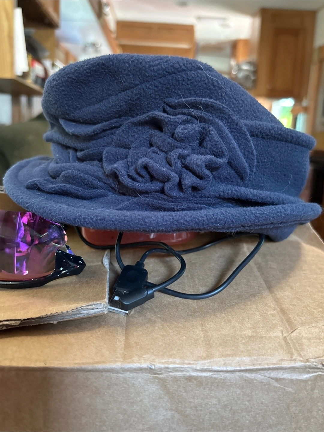 Polyester felt hat quite cute on ! I enjoyed it but down sizing