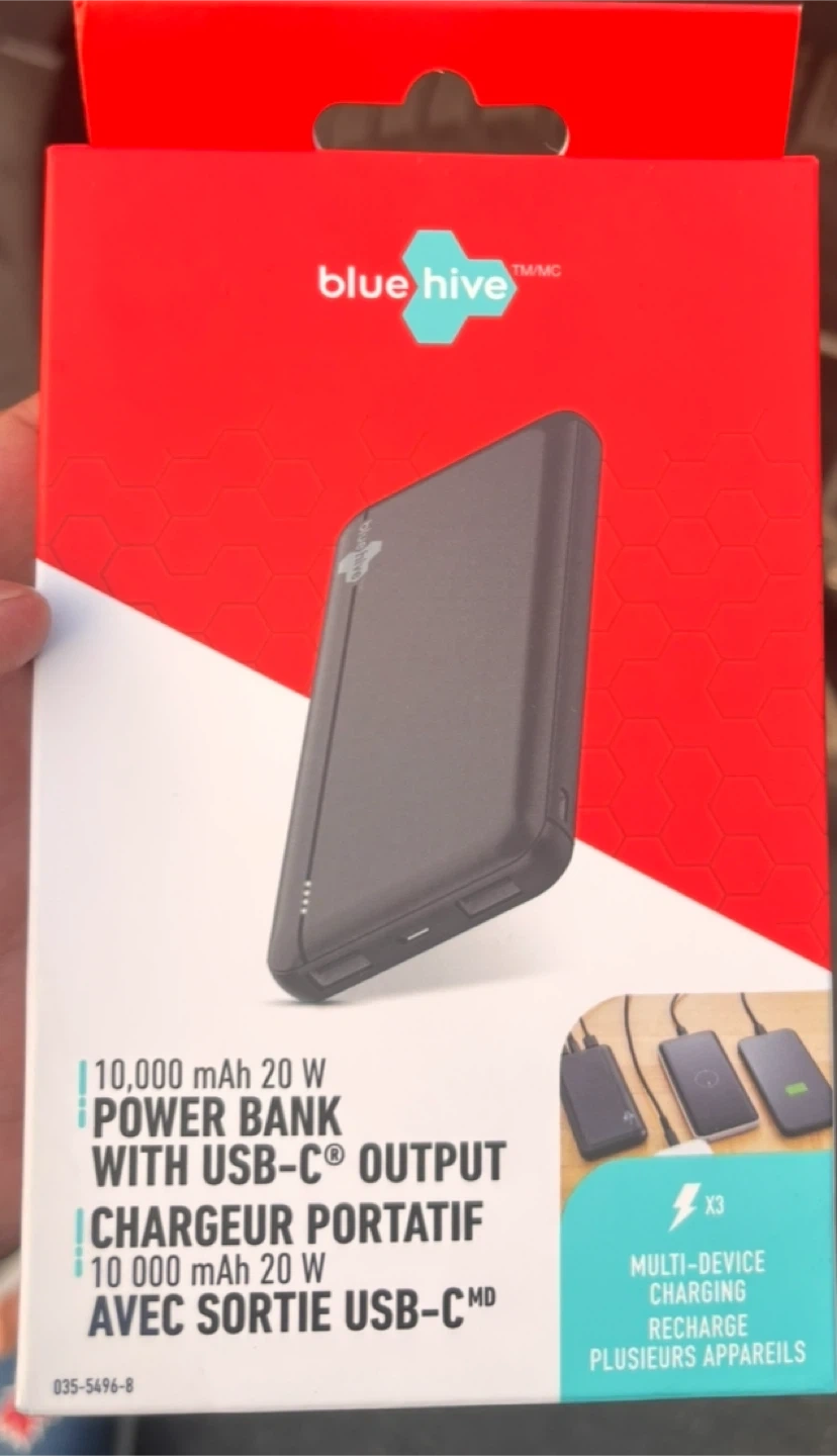 Selling a brand new Blue Hive power bank! It has a 10,000 mAh capacity and 20W output with USB-C. It's perfect for multi-device charging and super portable