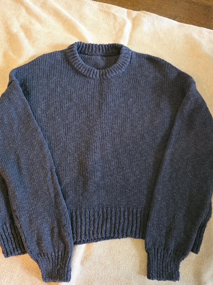 Cozy and comfortable knit sweater in a lovely blue colour! The size is small. It's made of 37% linen and 63% cotton, making it breathable and perfect for layering.