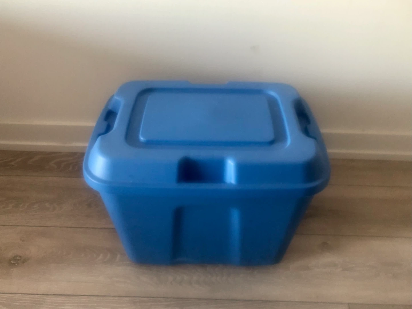 Selling a blue plastic storage bin. It's in great shape and ready to help you organize your space!