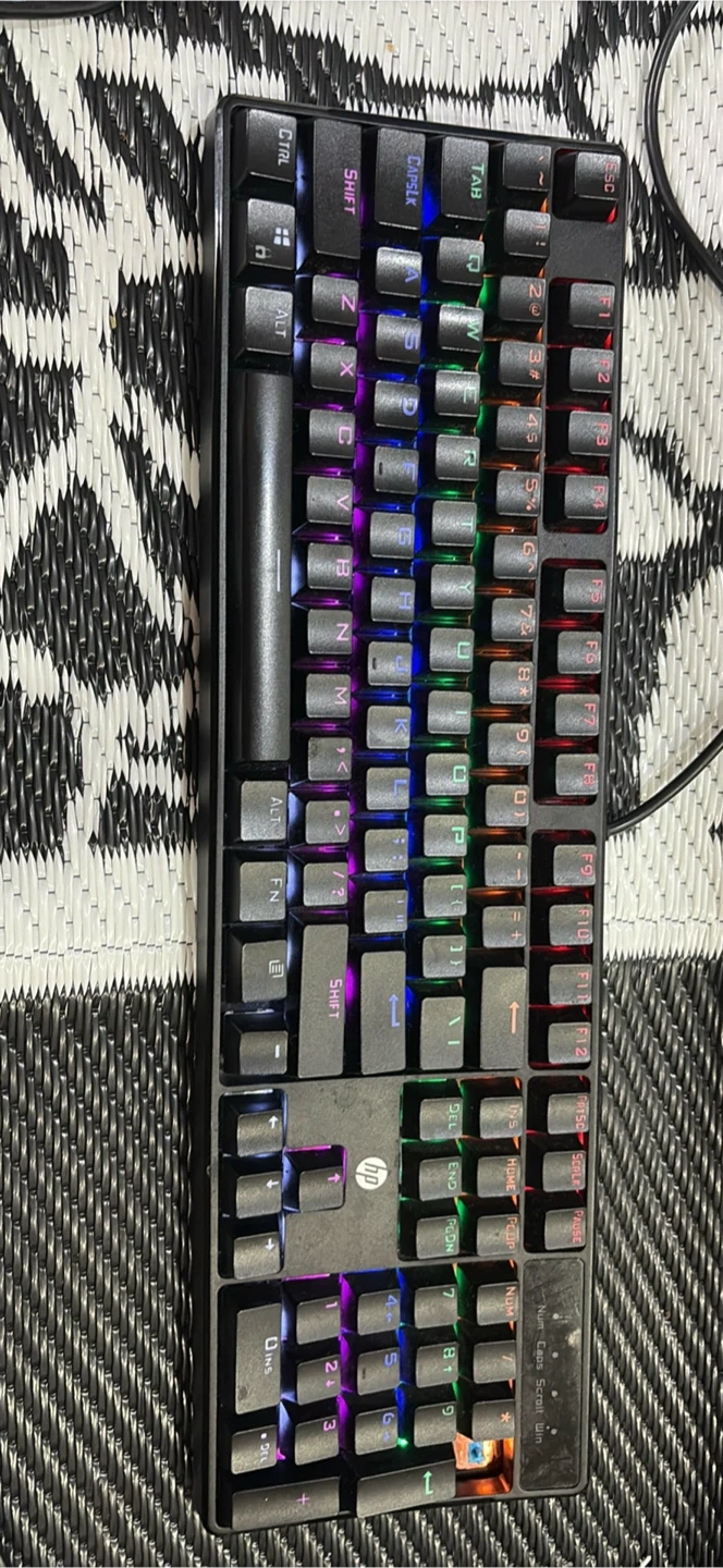 Blue switch keyboard, mic and 2 controllers ( dm for specific thing)