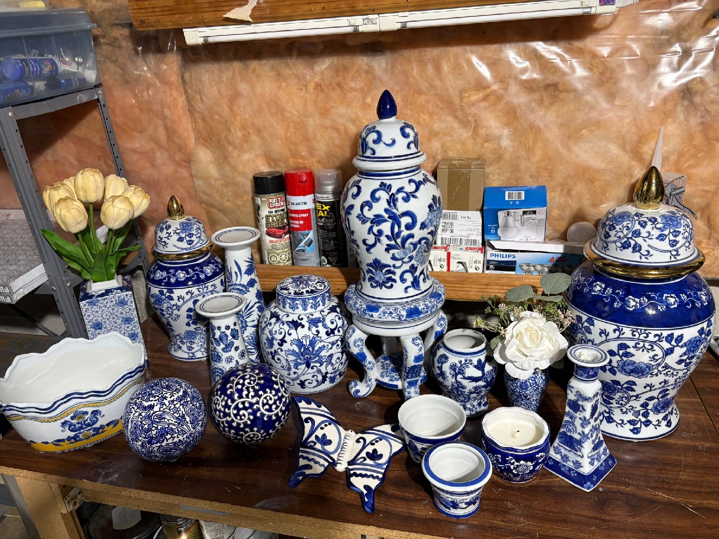 Selling a collection of beautiful blue and white decorative porcelain pieces! These items would make a lovely addition to any home. The collection includes vases, bowls, jars and other decorative items. All pieces are in great condition and ready to be displayed EACH CAN BE SOLD SEPERATELY. PRICE TO BE DETERMINED