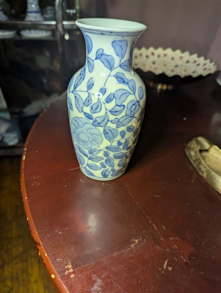 Selling a lovely blue and white floral vase! It would look great as a decorative piece in any room of your house