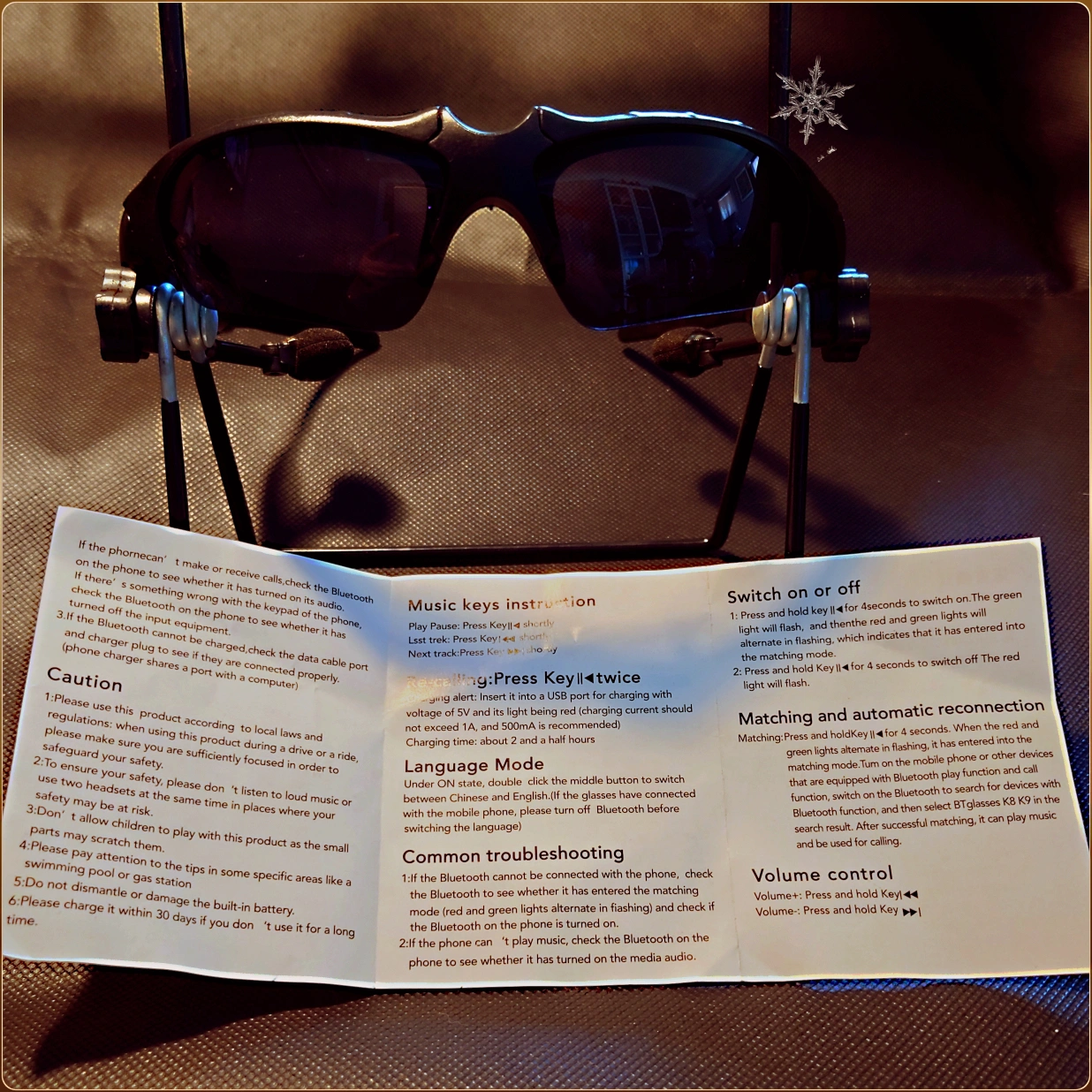 Selling a pair of Bluetooth sunglasses with built-in headphones. They come with instructions. Perfect for listening to music while enjoying the sun! NEW, Black, Polarized Lenses Built-in USB chargeable 150mAh lithium battery, comes with an USB cable. Earphones built directly onto the frame, adjustable to fit. Makes a great surprise for older children, teens and geeks