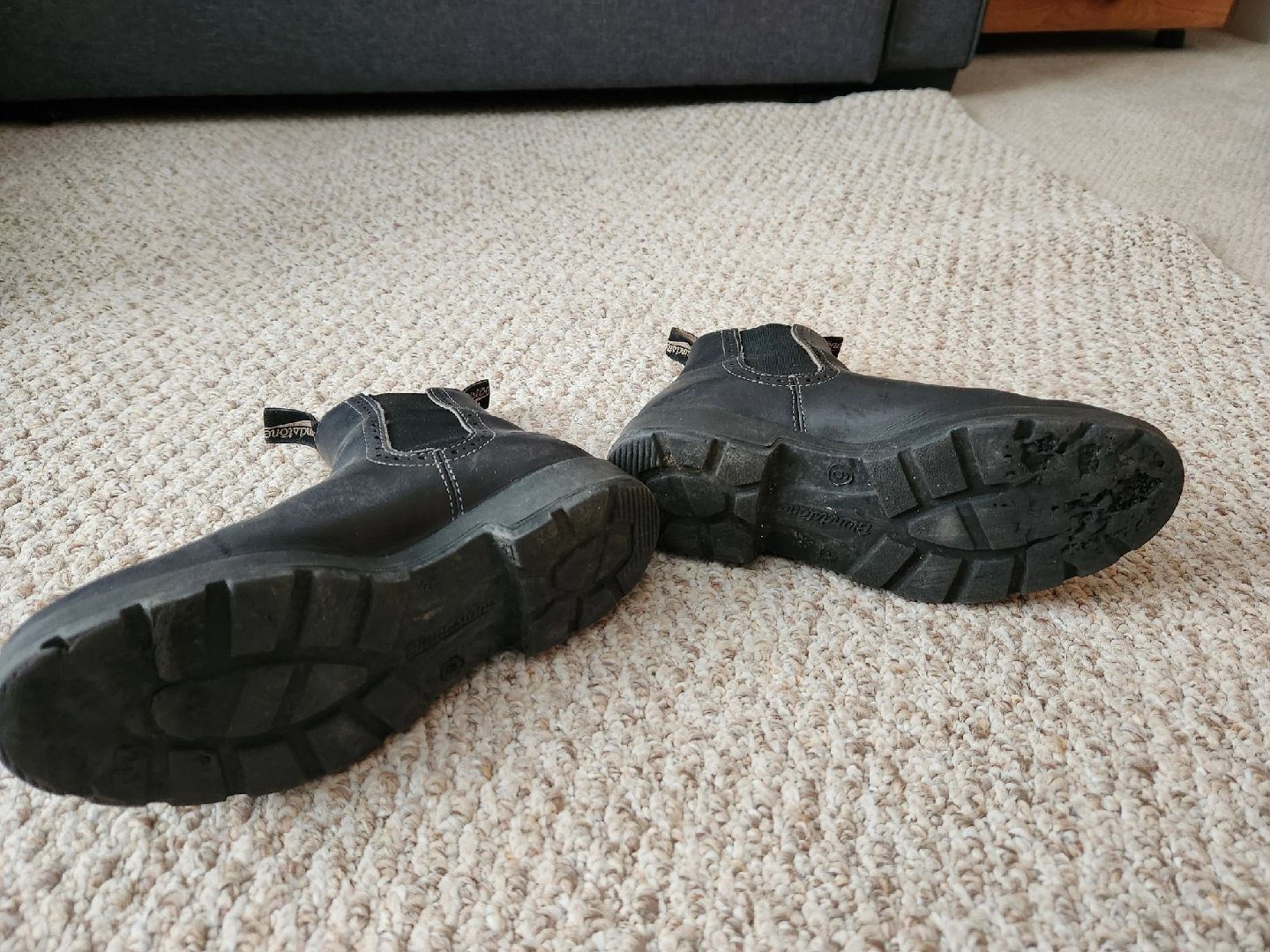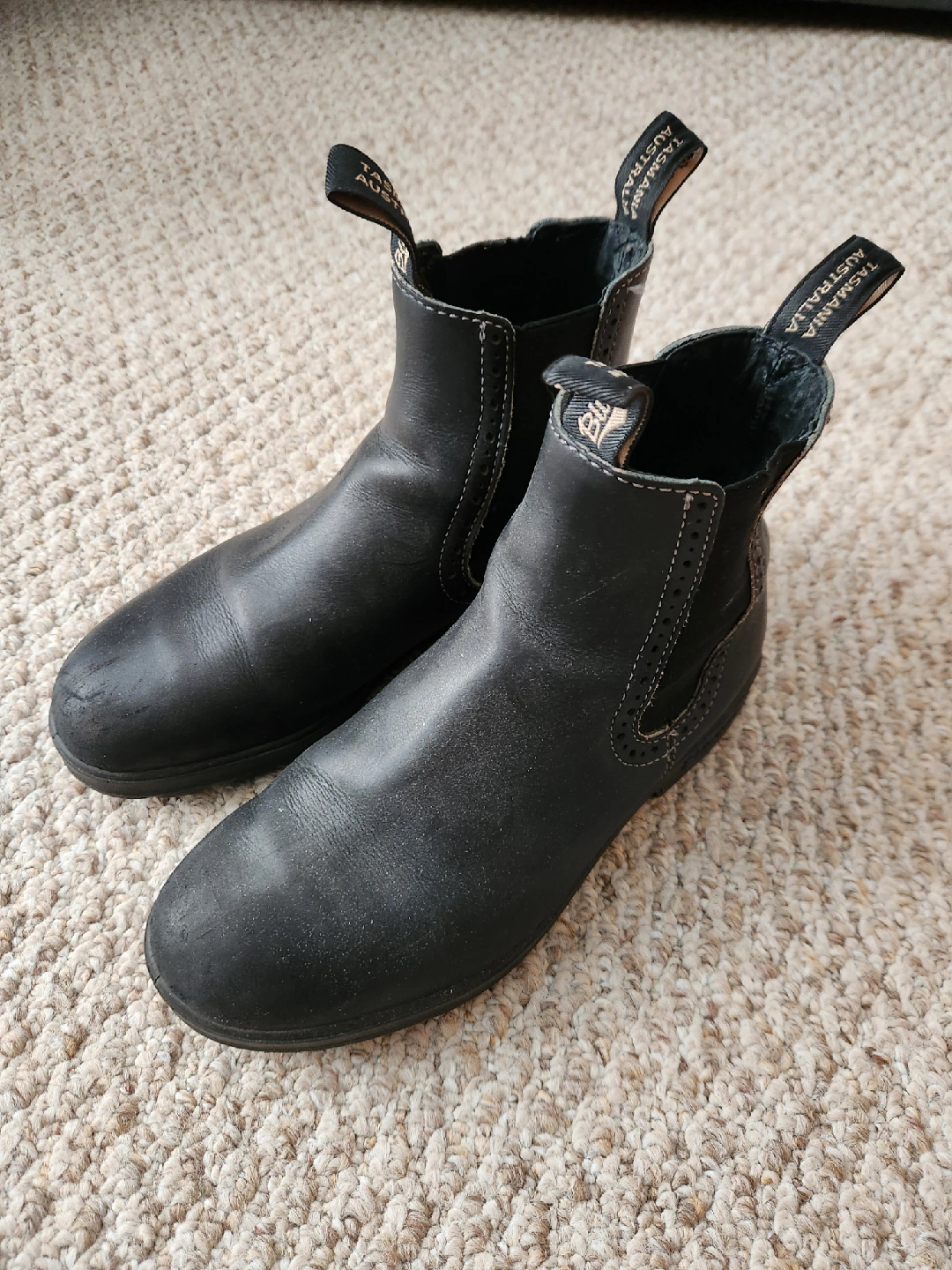 Selling a pair of Blundstone boots in size 9. They're in good condition and ready for a new home! These are a classic style and super durable for everyday wear. minor melt on one toe but doesn't make any difference in fit or feel!
