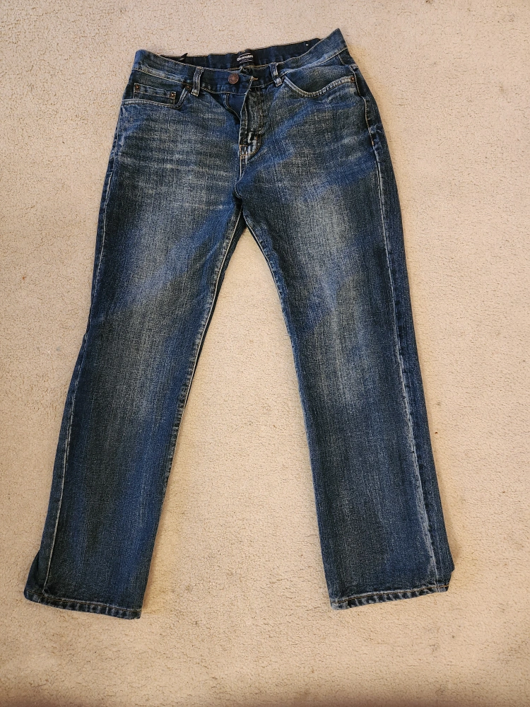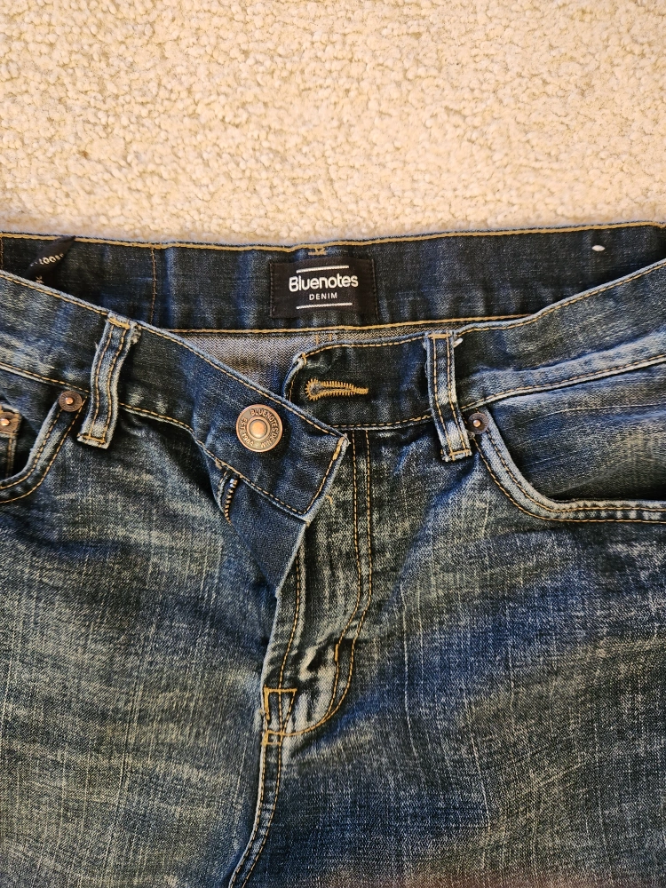Available in October sometime These are a pair of denim jeans. The jeans feature a button closure and pockets. These are great to wear when you're just relaxing at home.