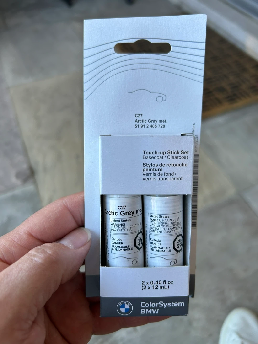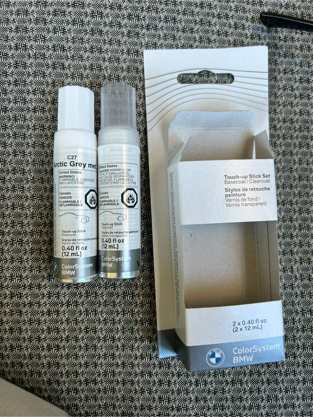 Selling a BMW ColorSystem touch-up stick set in Arctic Grey Metallic (C27). Includes basecoat and clearcoat, each 2 x 0.40 fl oz (12 mL). Perfect for touching up any minor scratches or paint chips on your BMW!