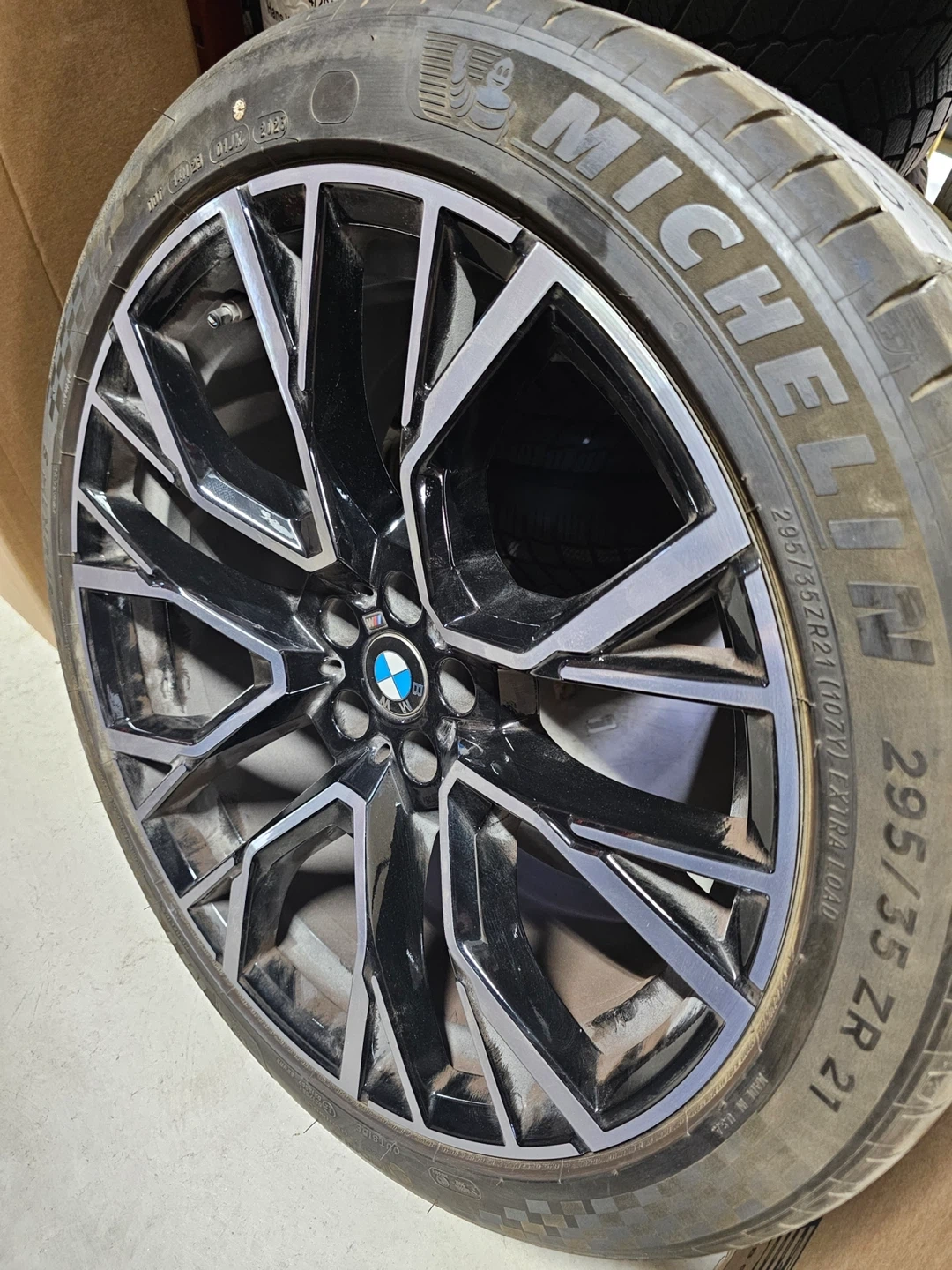 Selling a set of BMW rims with Michelin Pilot Sport 4 S tires. The tire size is 295/35 ZR21. They show some signs of use, but are still in good condition. BMW original rim(OEM).