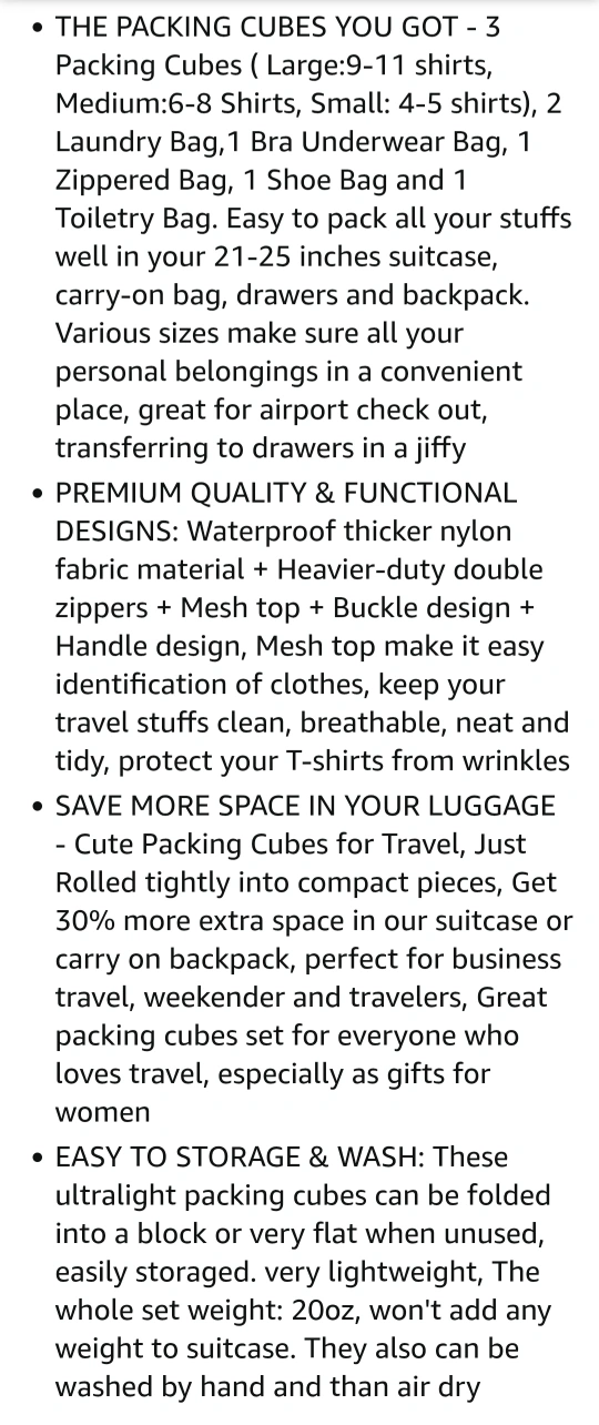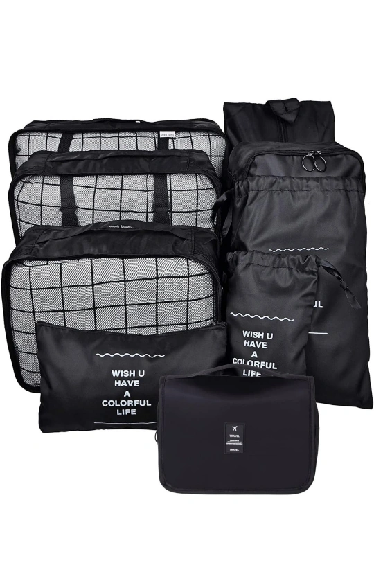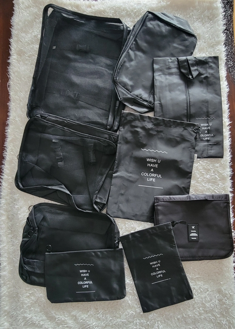 Brand new nine-piece black packing cube set. Includes various sizes, ideal for travel. Durable nylon fabric. Mesh tops for easy identification. Lightweight and easy to store. Sells for $34.99 +tax on Amazon. Own it for a much lesser price! Check out my other listings and bundle to save. ππ»πΈ Cash and pickup only on Brimley and Eglinton Rd E. in Scarborough.