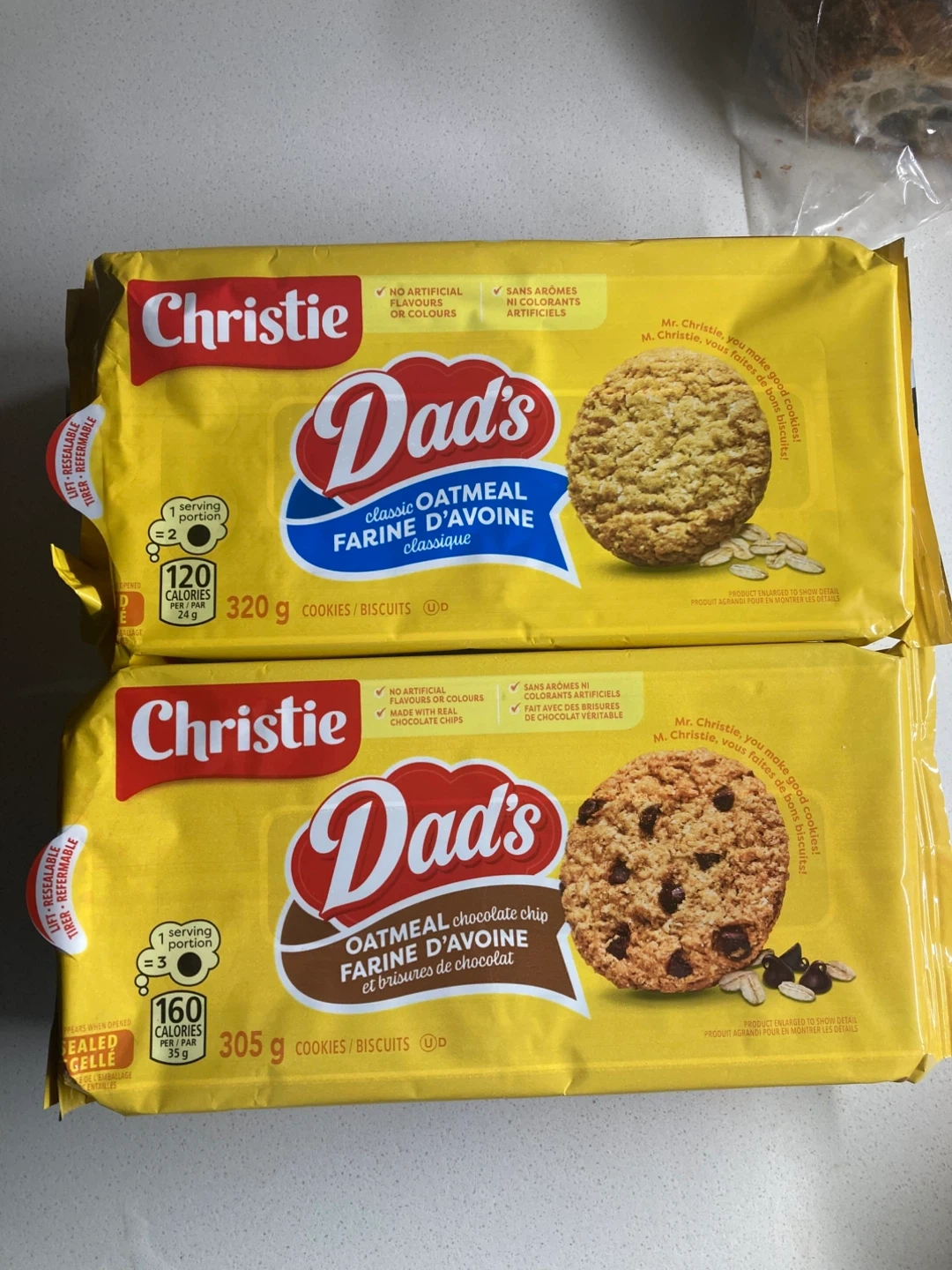 Two new, sealed packs of Christie Dad's Oatmeal Cookies for sale! One is the classic oatmeal flavour (320g), and the other is oatmeal chocolate chip (305g). Both are sealed and have a best before date of November 20, 2025. Take one for $2 or both for $3! A bargain! Available for pickup, or I can also meet downtown as needed. 🌺 Please also check out my other items! 🥰