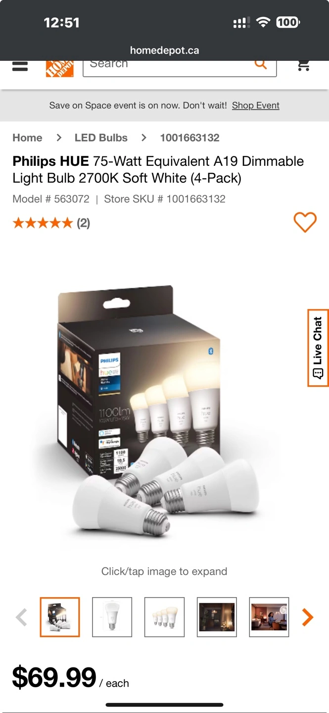 Four Philips Hue smart light bulbs. 75-watt equivalent, A19 shape, dimmable, 2700K soft white colour temperature. New in box. Works with Google, Alexa and etc. Open to trade! Orginal price is 70$ plus tax
