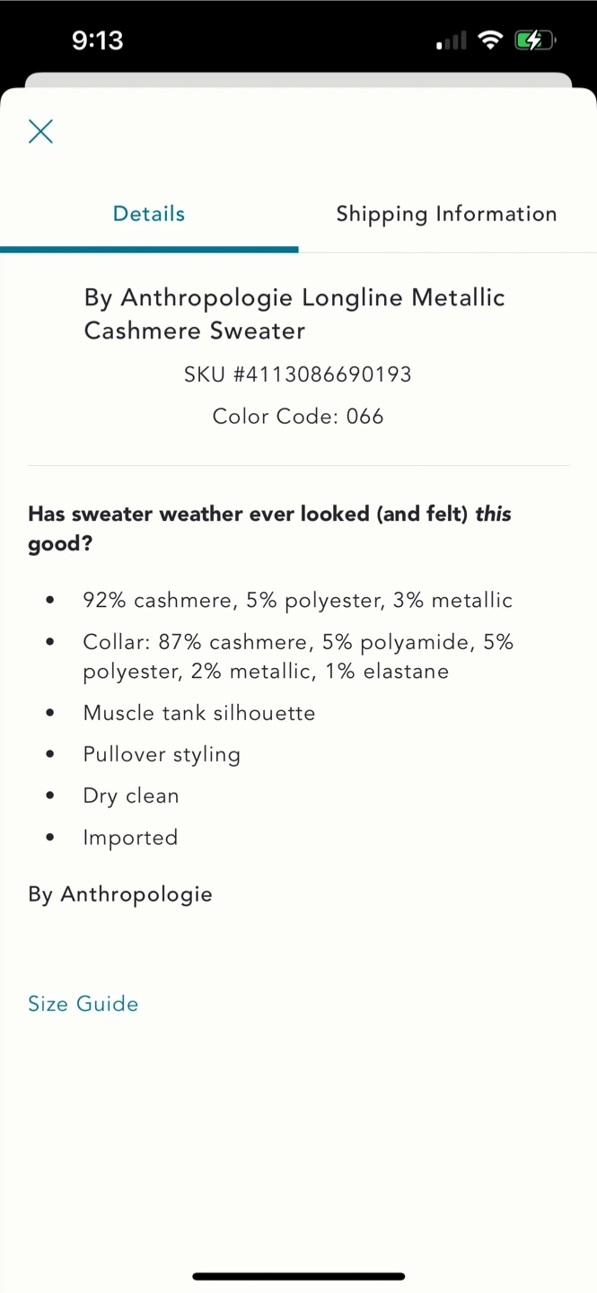 BNWT Anthropologie Longline Metallic Cashmere Sweater S