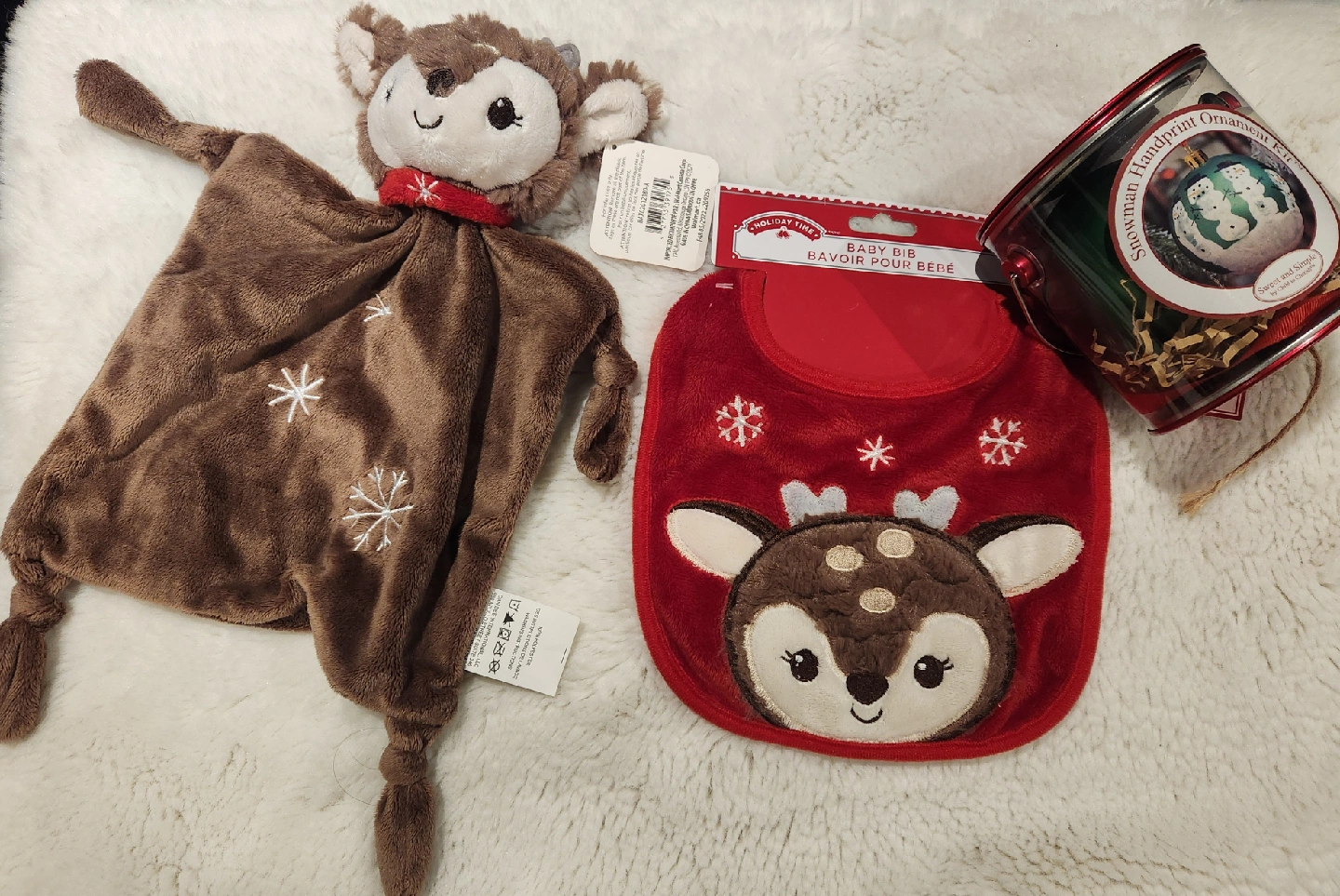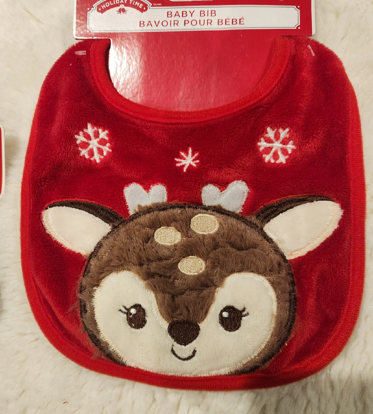 ALL ITEMS ARE BRAND NEW WITH TAGS Soft snuggle toy Christmas bib Make your own ornament handprint kit $3 each or take all for only $5