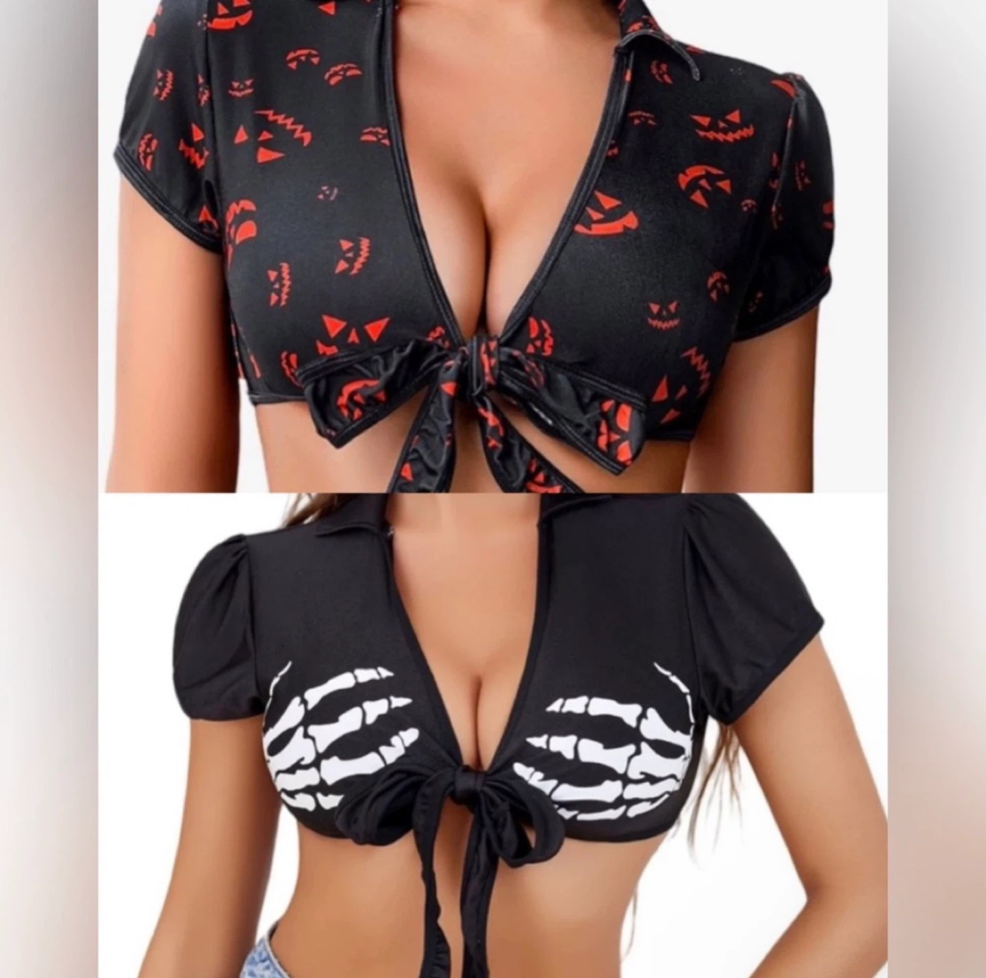 Comes with two brand new tags cropped tops that are perfect for October, Halloween, costumes, sexy outfits or any time of year. Size medium.