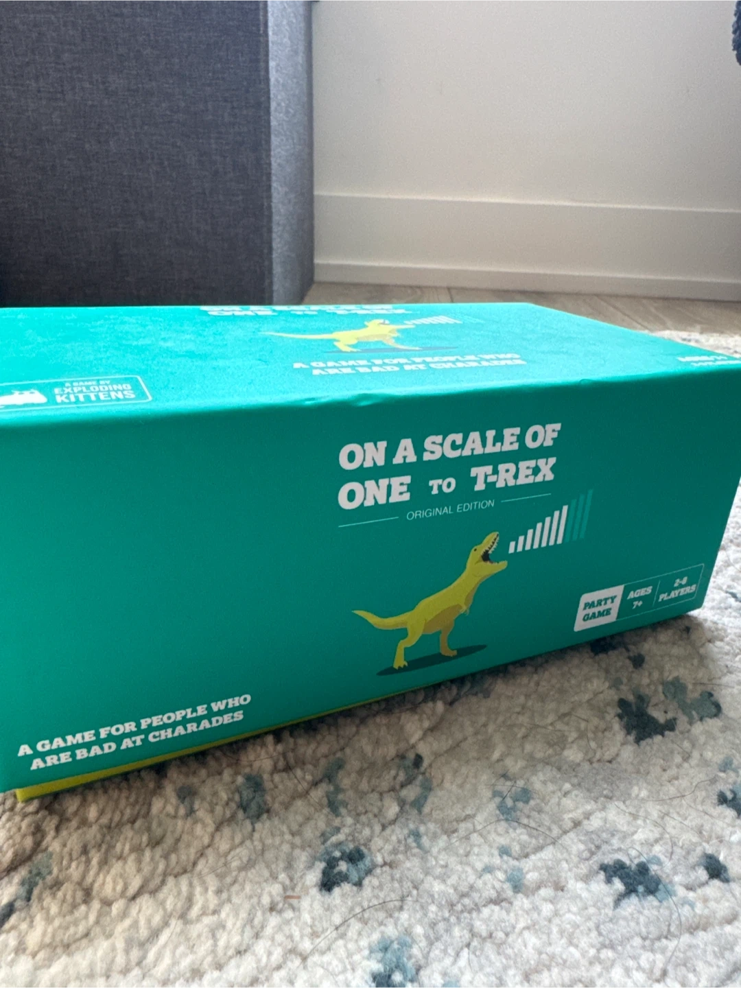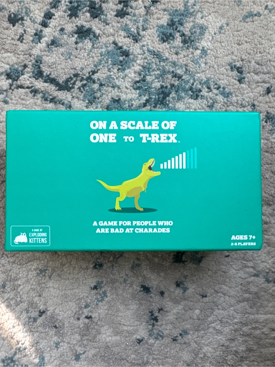 Selling the game "On a Scale of One to T-Rex" by Exploding Kittens!