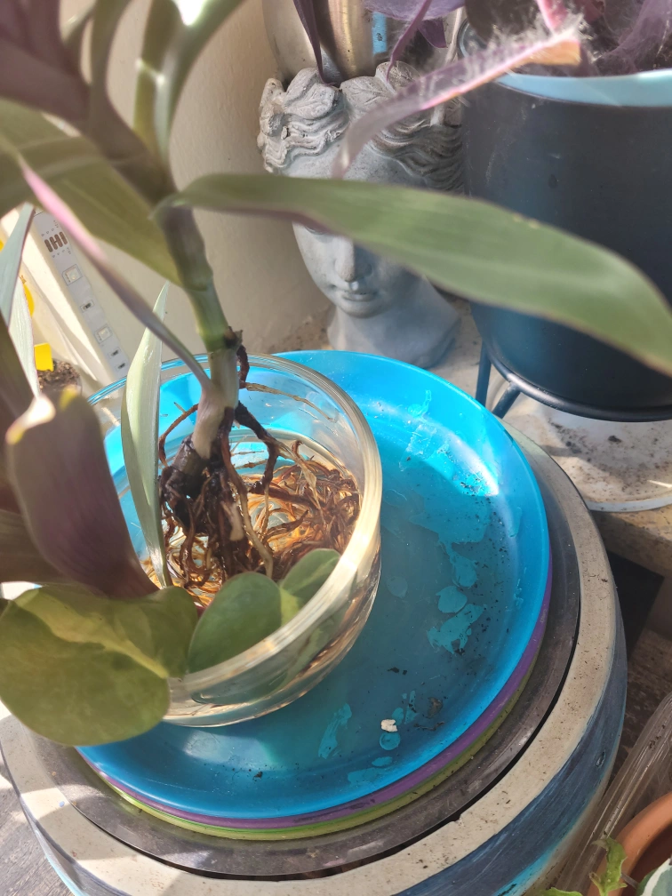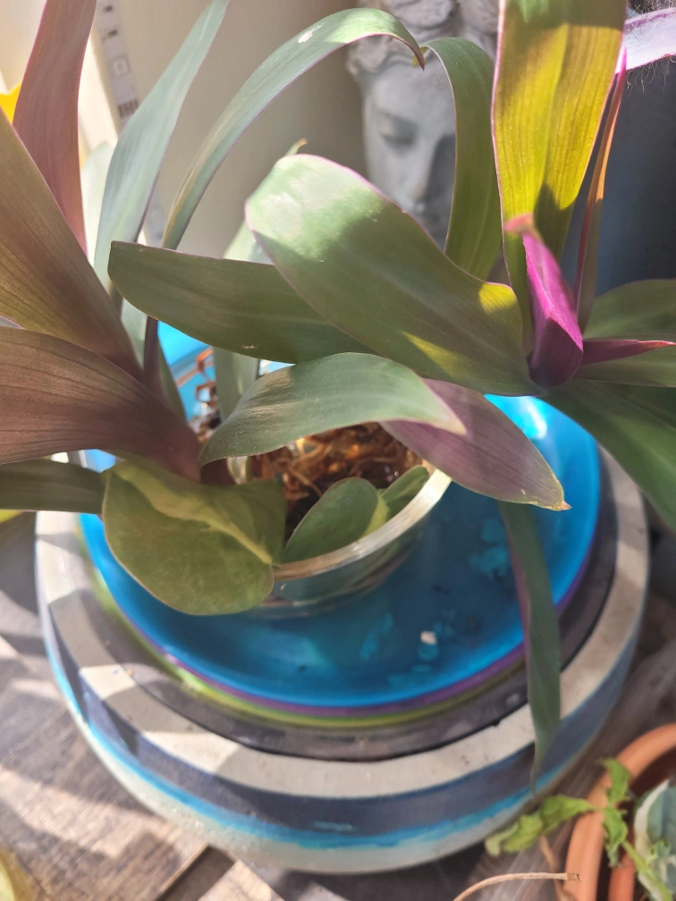 Boat lilly cuttings. Well rooted cuttings fast growing easy care plant. It's a beautiful plant with purple and green leaves, perfect for adding a touch of nature to your space.