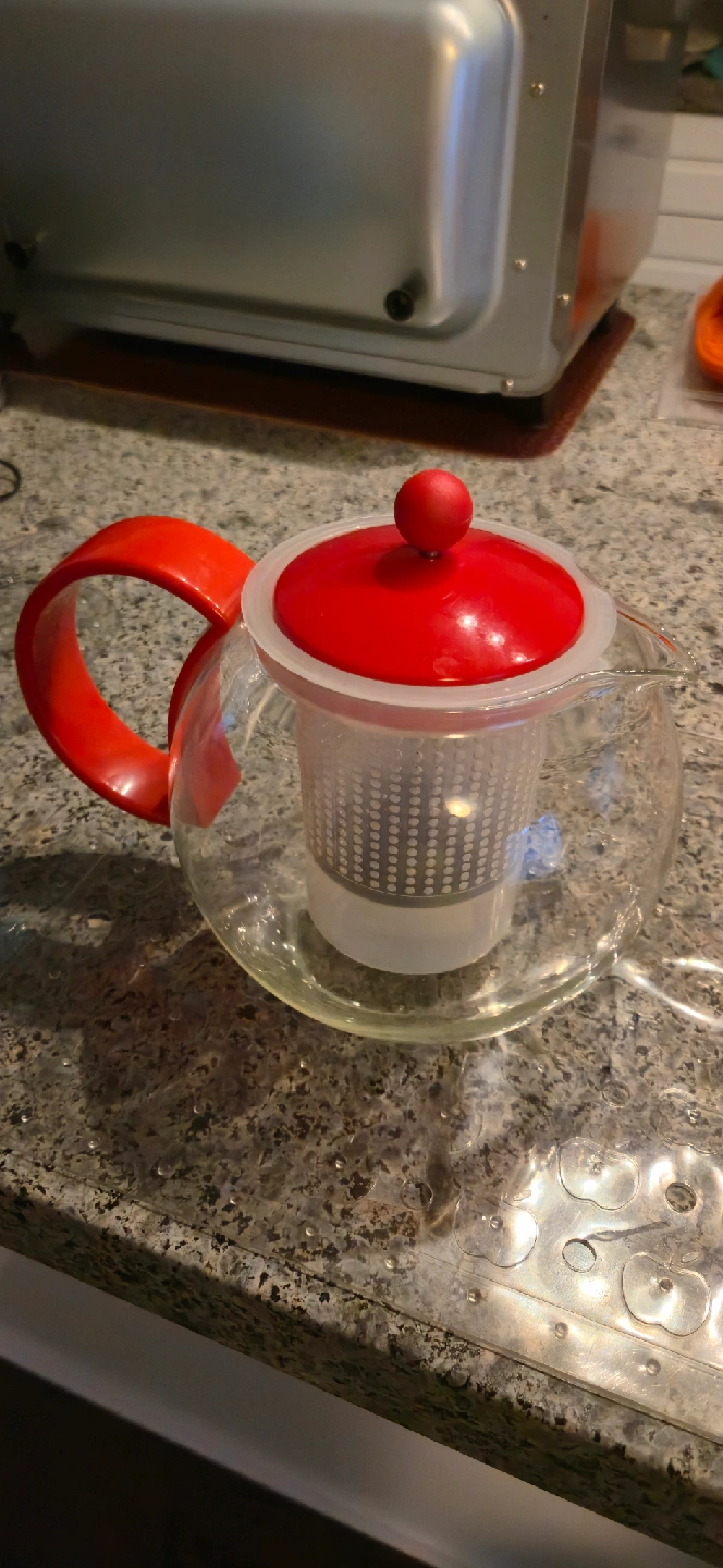I'm selling a Bodum teapot! It's in great shape and ready for a new home. This teapot features a built-in infuser, perfect for brewing your favourite loose leaf teas. Enjoy a cozy cup of tea with this stylish and functional teapot.