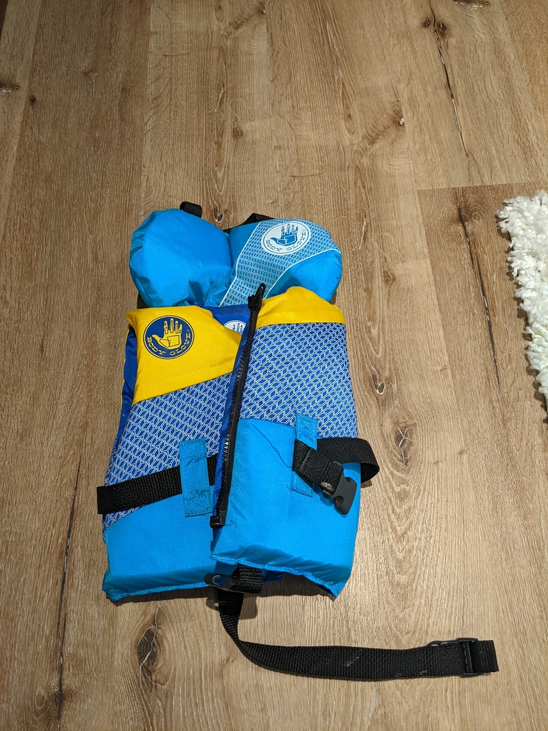 Infant Life Jacket Weight Capacity: 20-30 lbs Purchased from Canadian Tire and only used for one season. Jacket is like new, clean with no damage. The link with details can be found here: https://www.canadiantire.ca/en/pdp/body-glove-infant-nylon-pfd-0792022p.html#srp