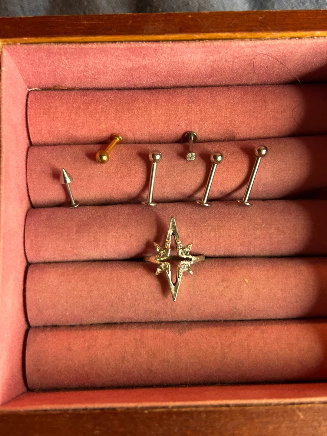 Selling a variety of body piercing jewellery. Includes barbells, horseshoe rings, and other styles. Great selection to choose from one actual ring! 5$ or less OBO Or 45$ for all