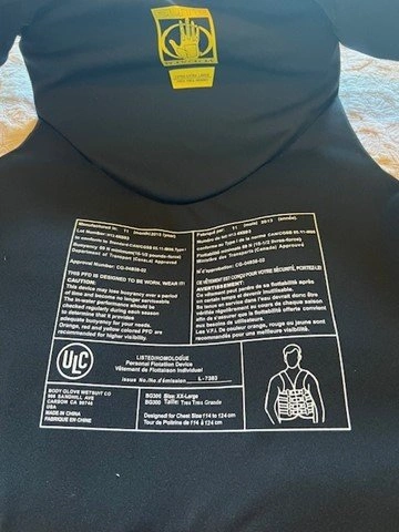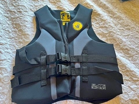 Bodyglove safety vest in like new condition. ✅ Size: XXL ✅ Color: Black ✅ Approved by the Department of Transport Canada ✅ Great for boating, jet skiing, paddleboarding, and other water sports ✅ Comfortable fit and high-quality material