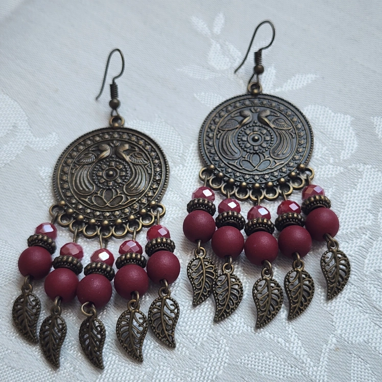 Boho Dangle Earrings - Bronze & Colourful