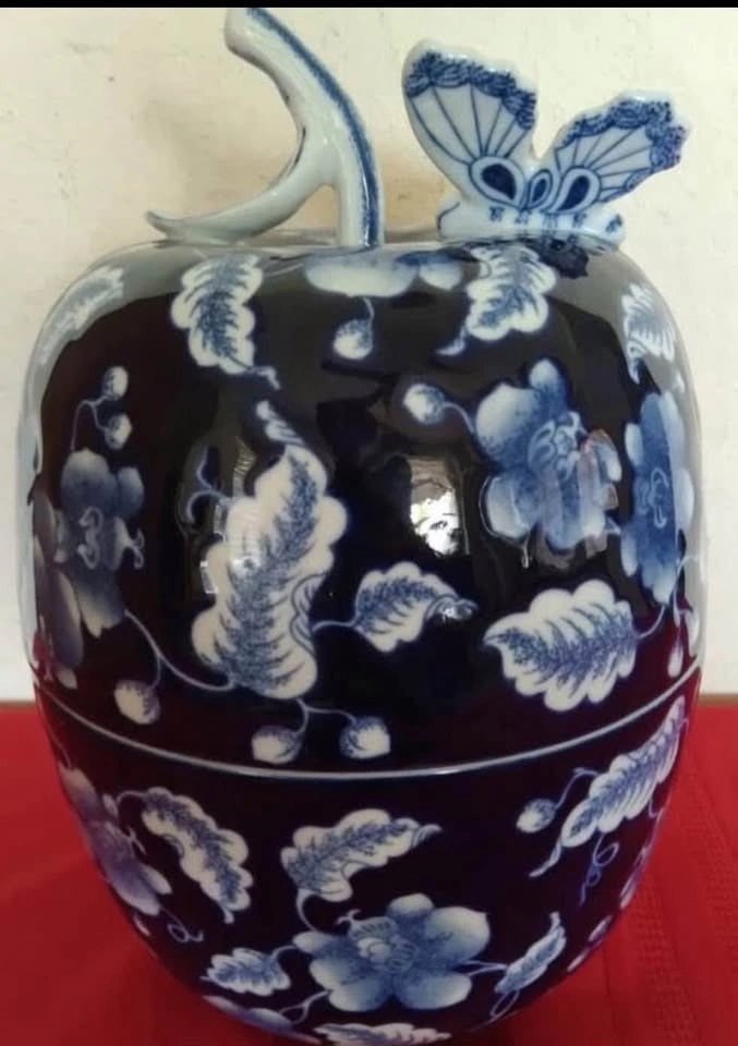 Bombay Chinoiserie Large Container Blue Apple Butterfly