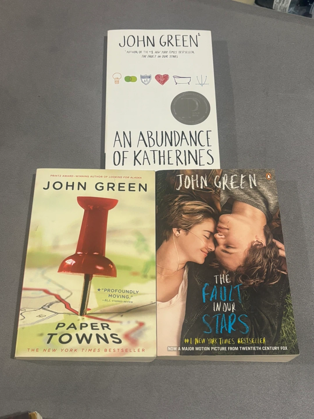 - The Book Thief Anniversary Edition by Markus Zusak - An Abundance of Katherines by John Green - Paper Towns by John Green - The Fault in Our Stars by John Green - We Were Liars by e. lockhart $5 each