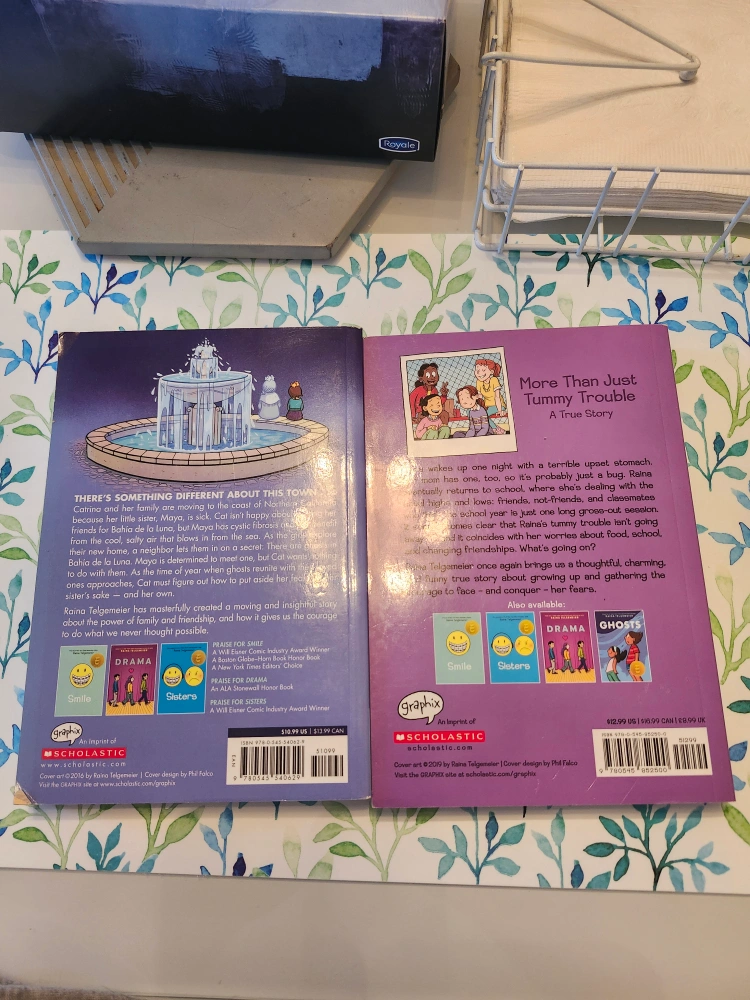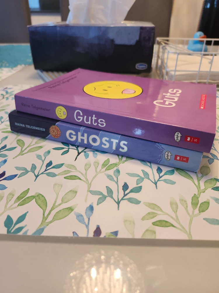 Two books from Raina Telgemeier, both for $5 or free if you purchase anything from my profile! (With any purchase, you can choose one free item that has ๐ข from my profile.) Ghosts by Raina Telgemeier Guts by Raina Telgemeier
