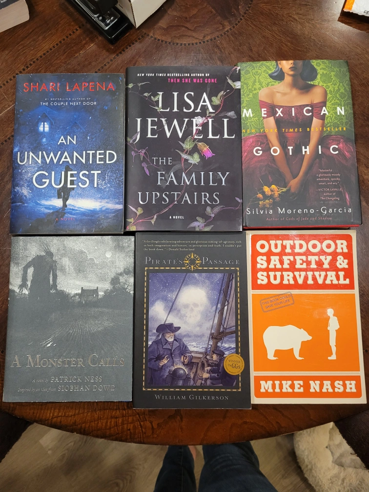Books! $5 each, or $3/book if purchasing 4+ books. Mix and Match with other posts. - An Unwanted Guest by Shari Lapena - The Family Upstairs by Lisa Jewell - Mexican Gothic by Silvia Moreno-Garcia - A Monster Calls by Patrick Ness - Pirate's Passage by William Gilkerson - Outdoor Safety & Survival by Mike Nash