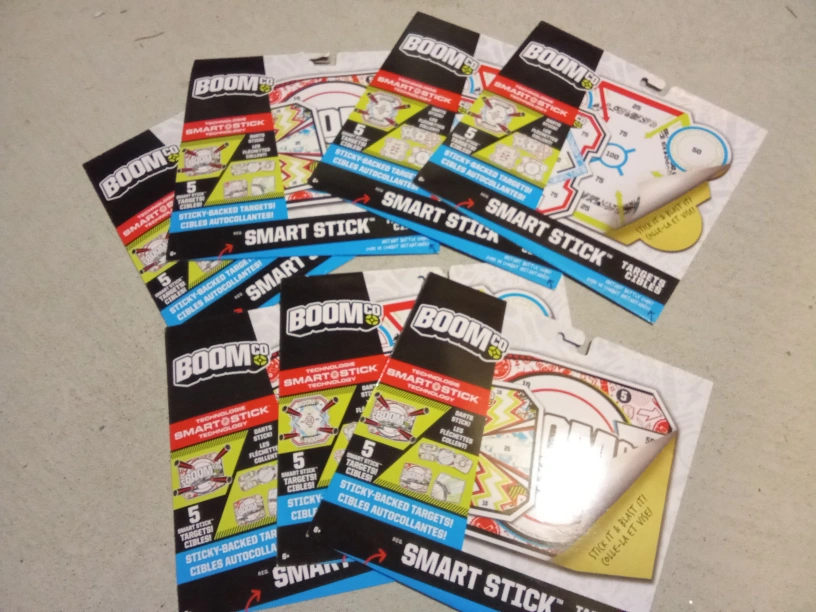 Get ready to create your own battle zone with these BOOMco Smart Stick Targets! Each pack comes with 5 sticky-backed targets that are perfect for sticking to various surfaces. Great for dart blasters and shield play! $2 each pack or $10 for all 7
