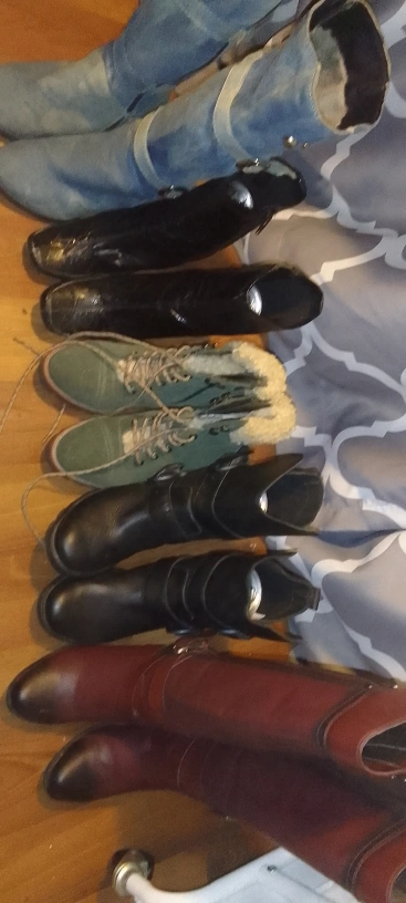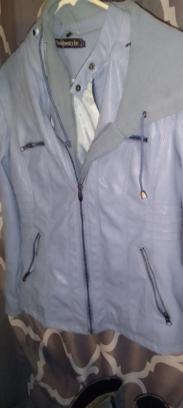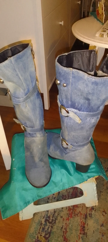 SIZE 5 1/2 - 6 -Assorted boots for sale -blue boots with matching blue leather jacket with hoodie that can be attached or taken off