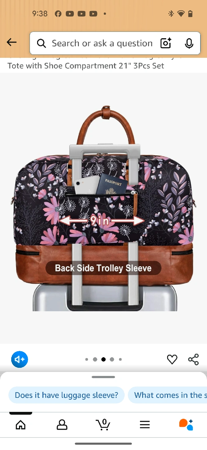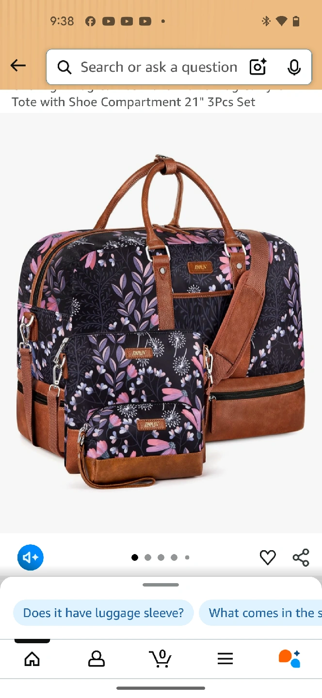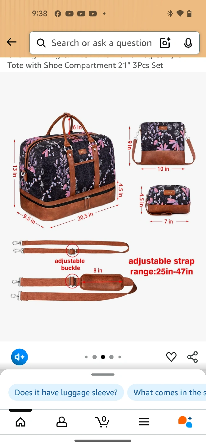 This Bopai 3-piece set is perfect for travel! The tote bag features a shoe compartment and is waterproof. The set includes a tote, a smaller bag, and a wristlet. The tote measures approximately 21 inches long, 13 inches high, and 9.5 inches wide. The adjustable strap ranges from 25 to 47 inches. Great for weekend getaways or as a carry-on!