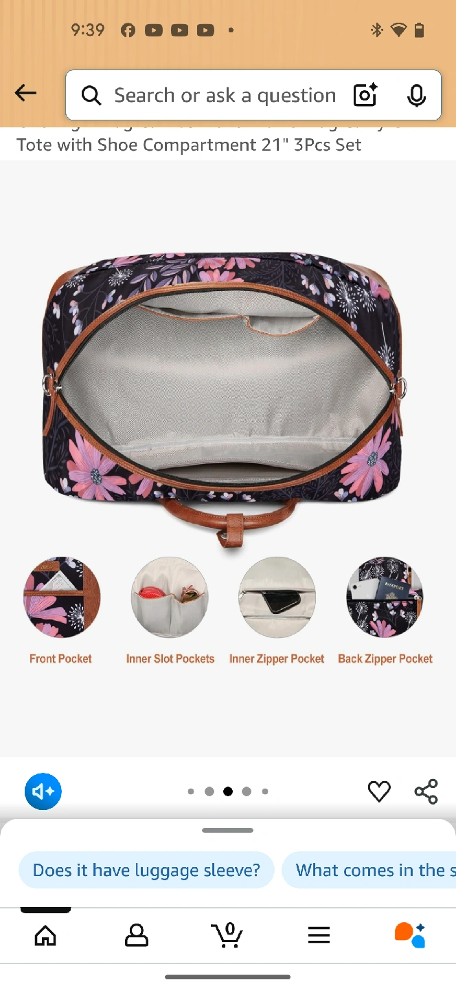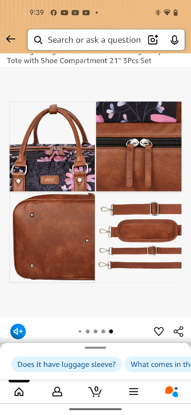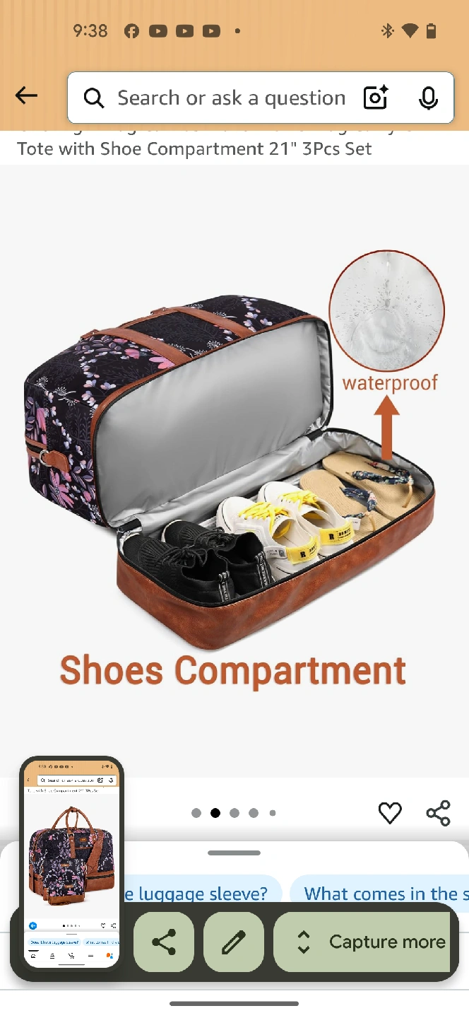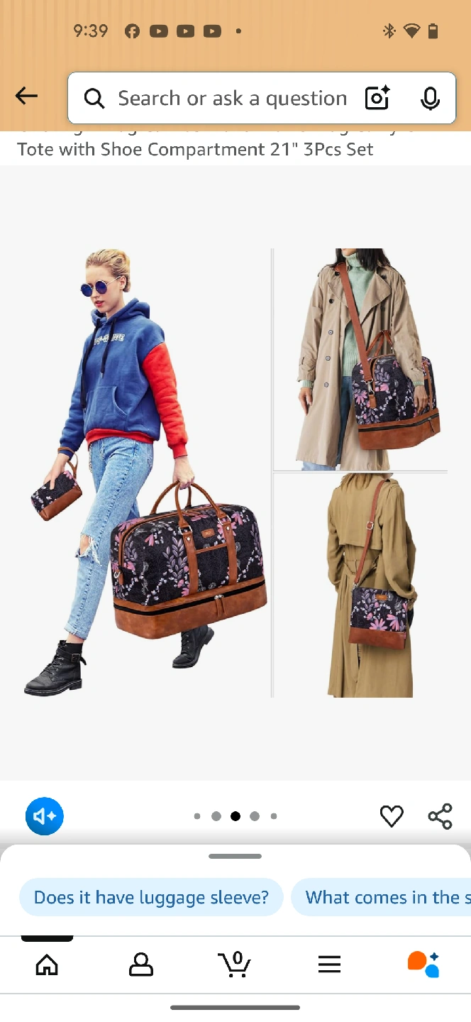 This Bopai 3-piece set is perfect for travel! The tote bag features a shoe compartment and is waterproof. The set includes a tote, a smaller bag, and a wristlet. The tote measures approximately 21 inches long, 13 inches high, and 9.5 inches wide. The adjustable strap ranges from 25 to 47 inches. Great for weekend getaways or as a carry-on!