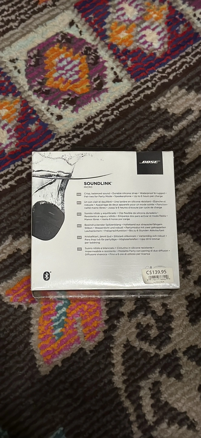 Selling a Bose SoundLink Micro speaker! It's waterproof and rugged, perfect for any adventure. The box is included. Originally bought for $139.95