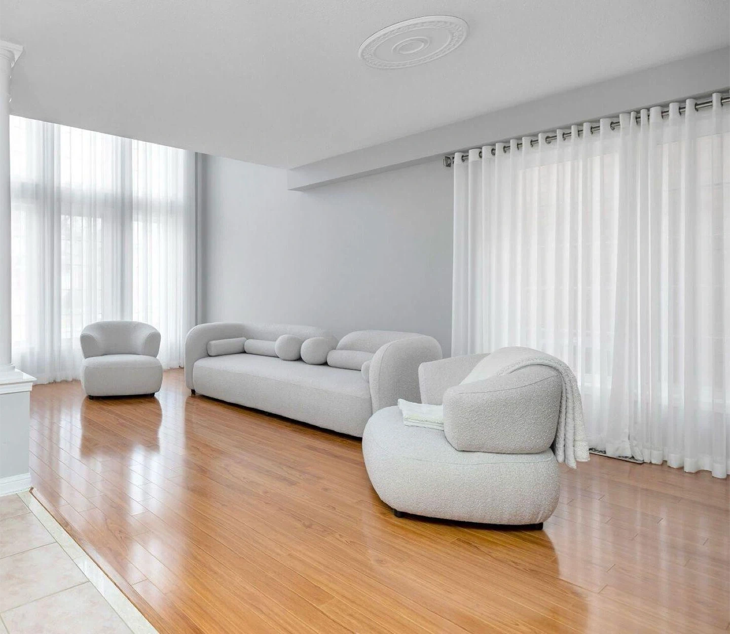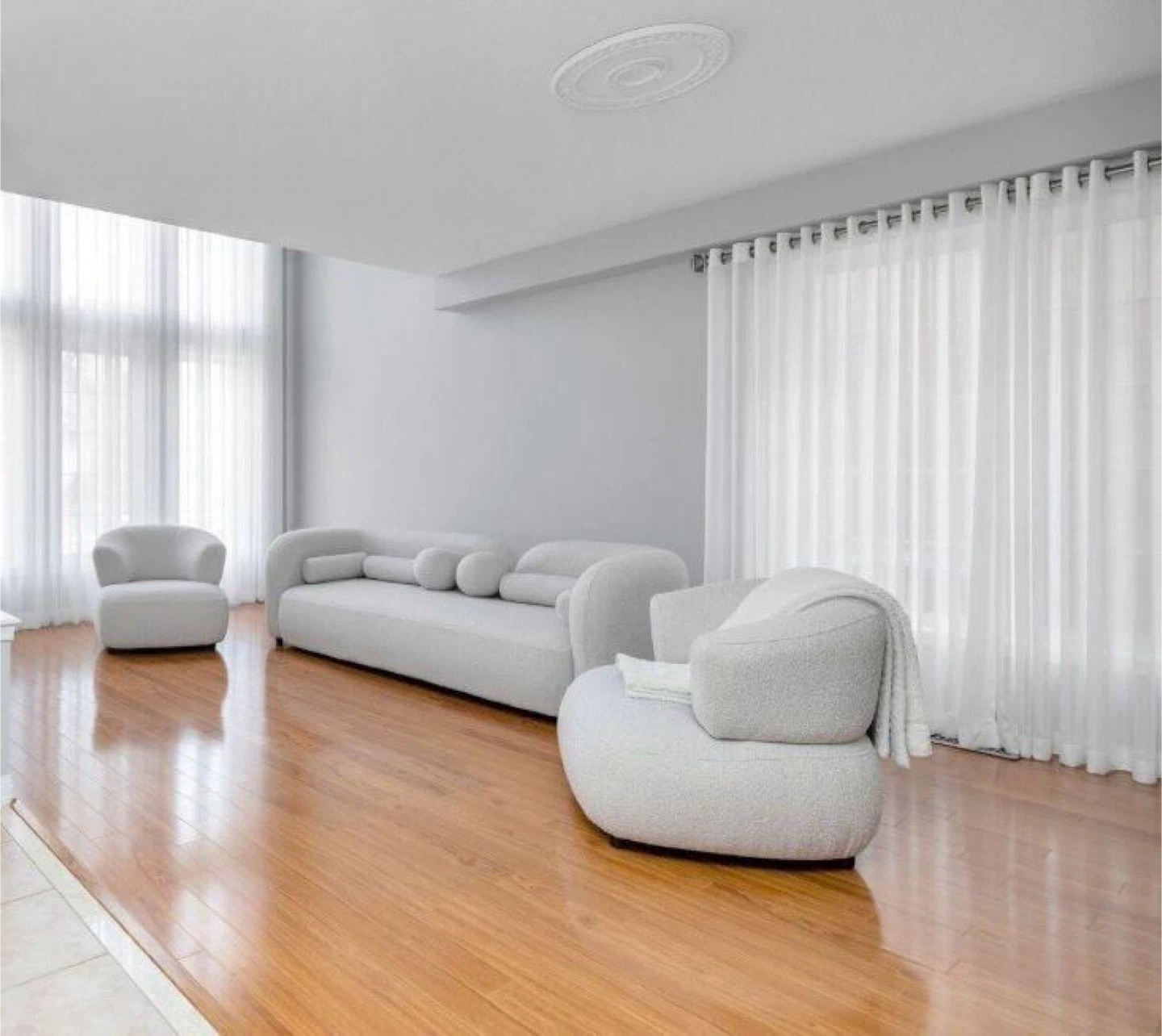 Selling a beautiful bouclé sofa set that includes a sofa and two accent chairs. This set is in great condition and would look amazing in any living space. The soft, textured bouclé fabric adds a touch of elegance and comfort to your home. It's a stylish and cozy addition!