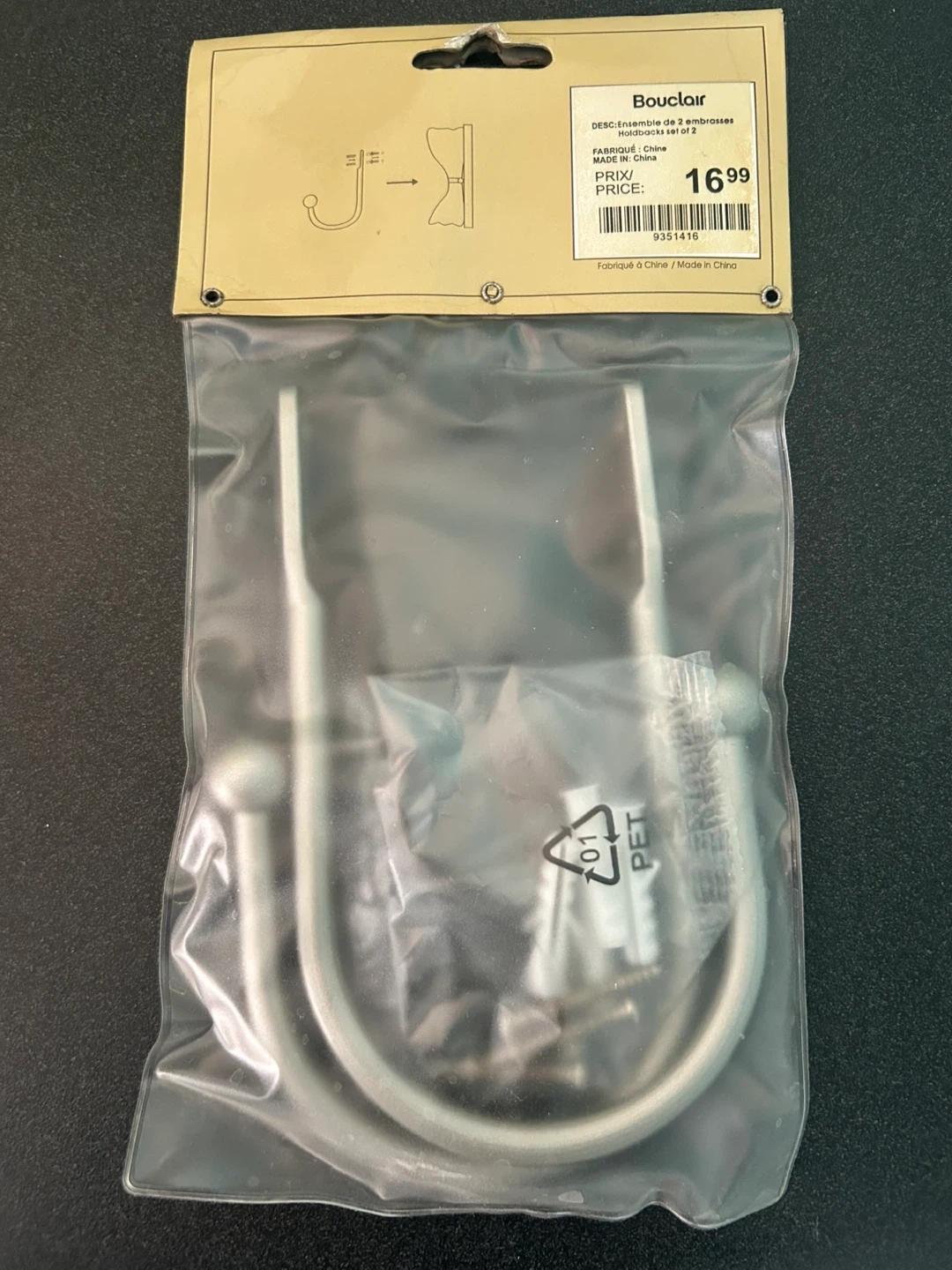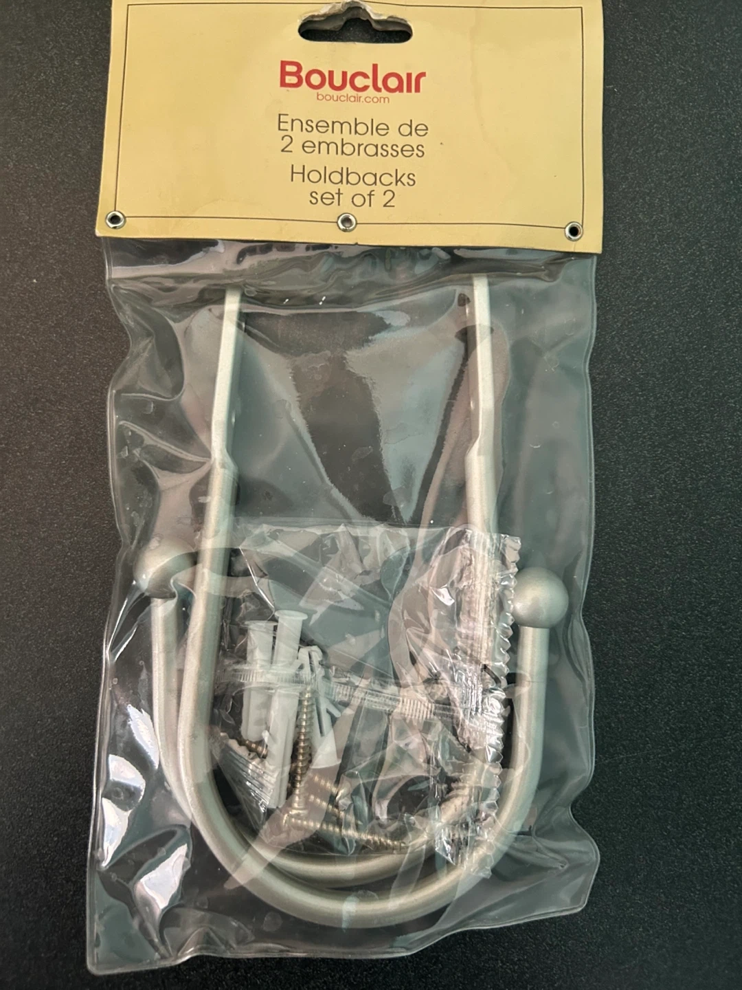 Selling a brand new set of Bouclair curtain holdbacks! This is a set of 2 and includes the hardware for installation. Originally bought for $16.99
