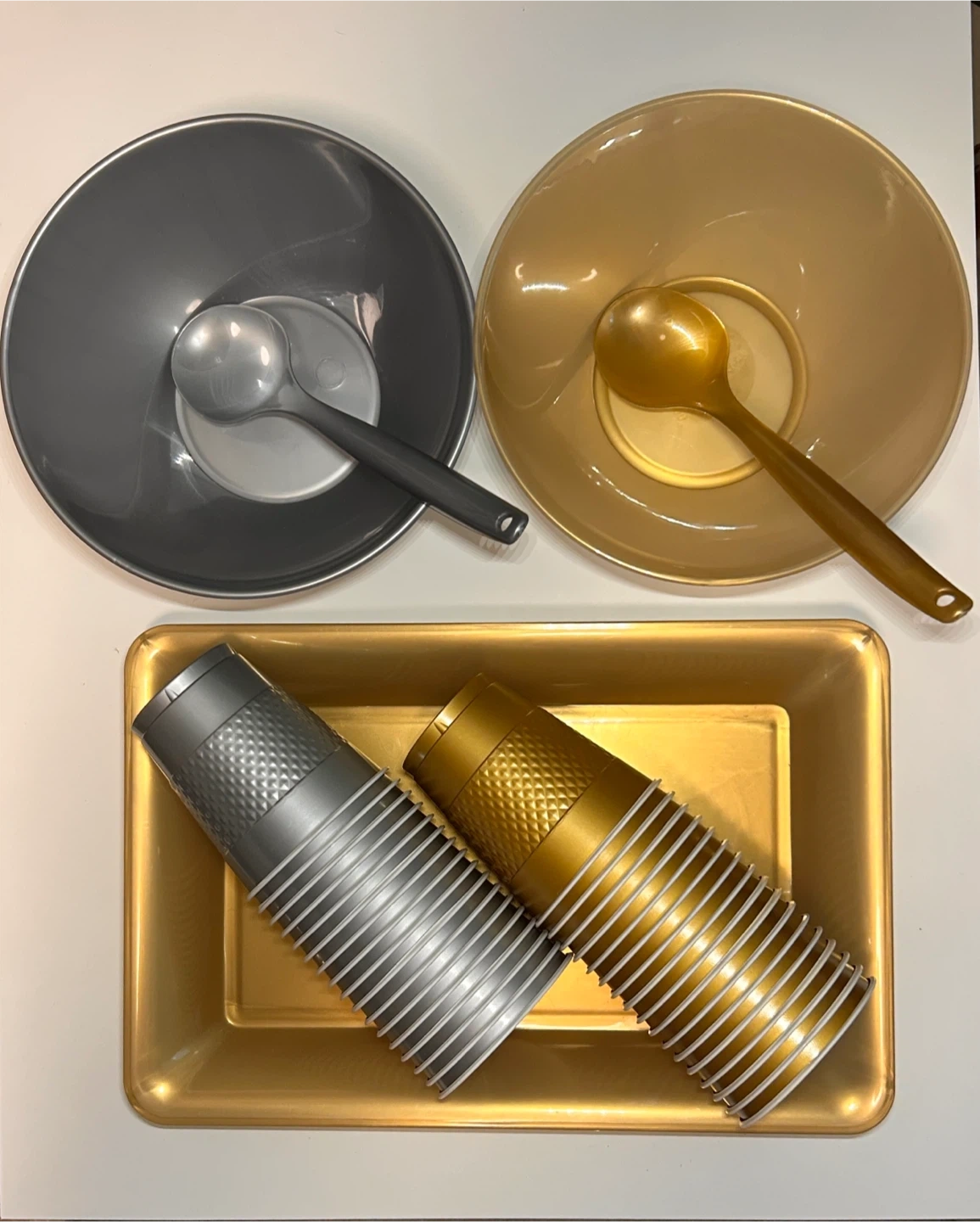 Bowl, Tray, Cups & Spoons - Gold & Silver Party Set