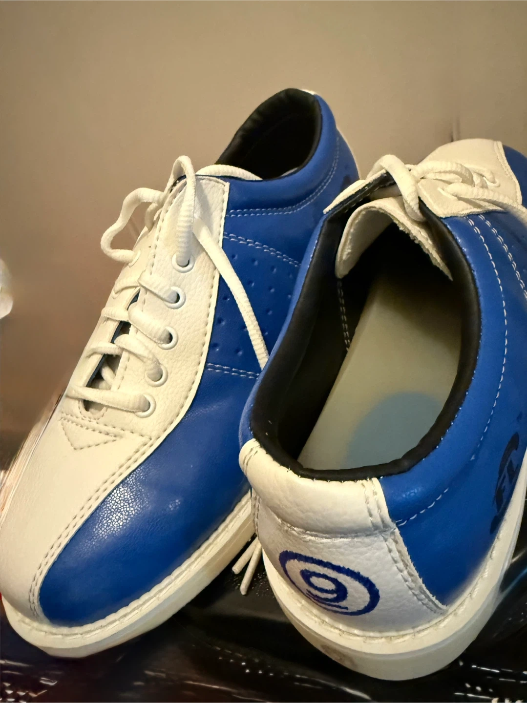 Bowling shoes in blue and white. They are in very good condition!