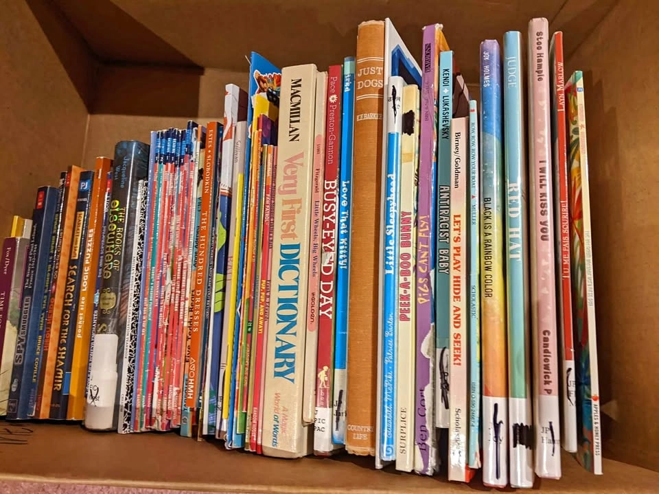 A box of children's books. 58 books in total. Pick and choose the ones you want for $5 each. Or take the whole box for $75. Steeles and Hilda. Porch pick up available