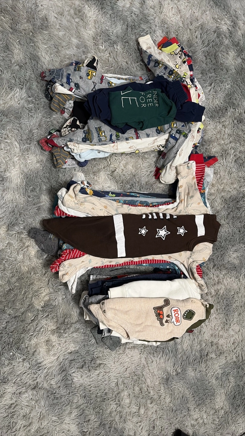 Selling a bundle of baby clothes. There's a mix of onesies, shirts, and pants. Great for a growing baby! Gap, carters , organic and bamboo ,stuffy, Aiden and Adis ,H&M, , over 60 pcs Will also throw in Aiden and Adis swaddle , another sleep sack , and a nested bean (no weight) $45 whole box !! (0.75 an item)