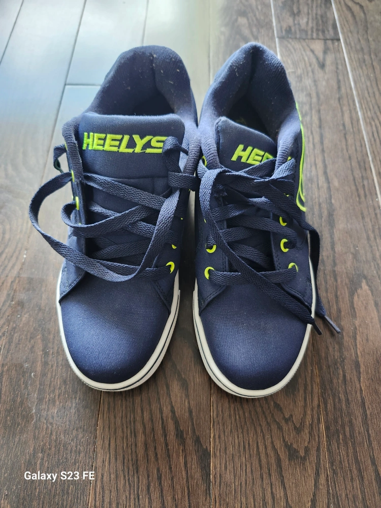 Boy Heely sneakers size 6. gently used Adidas slides kids size 3..brand new $8